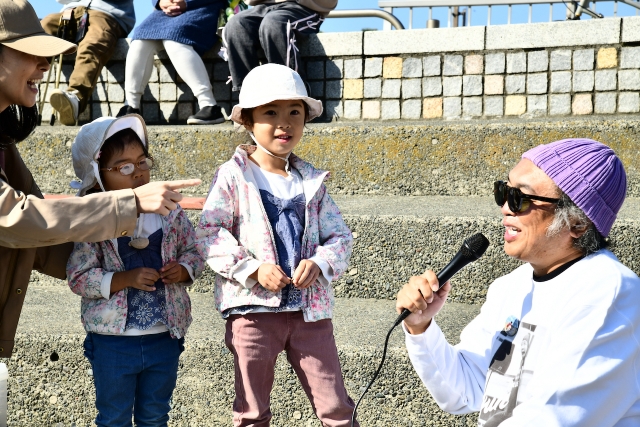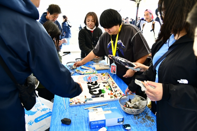 みんなで海を見て、ラジオ体操をして、ゴミ拾いしながら、拾ったプラスチックでアートをつくり