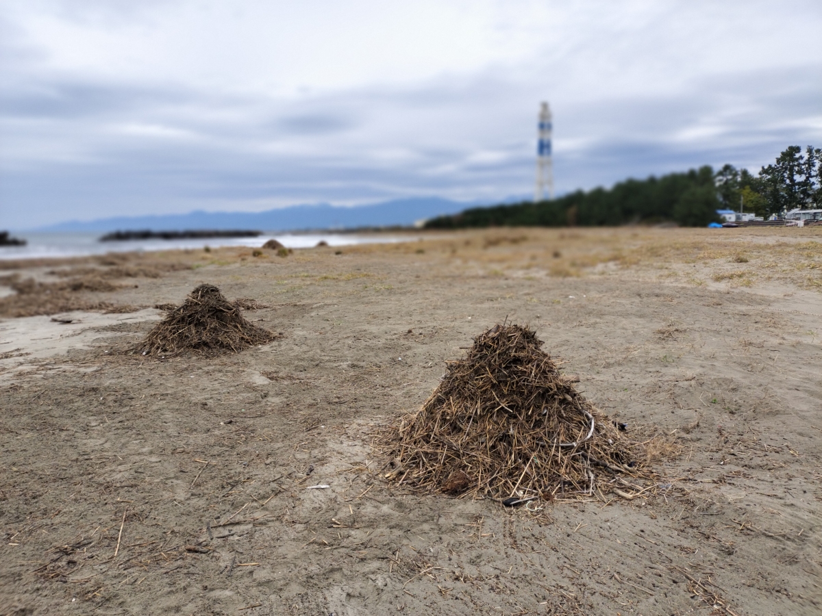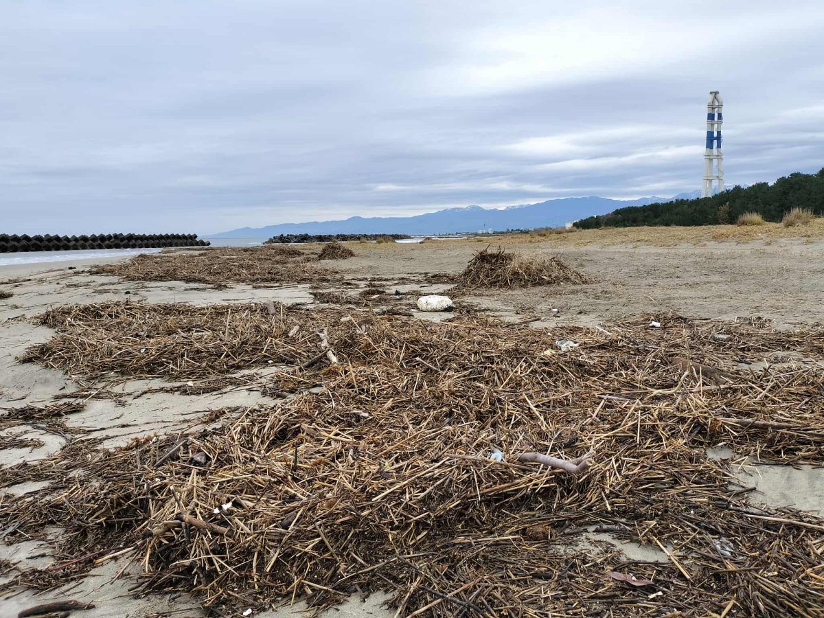 この時期の八重津浜は、葦や流木が多く打ち上がります。