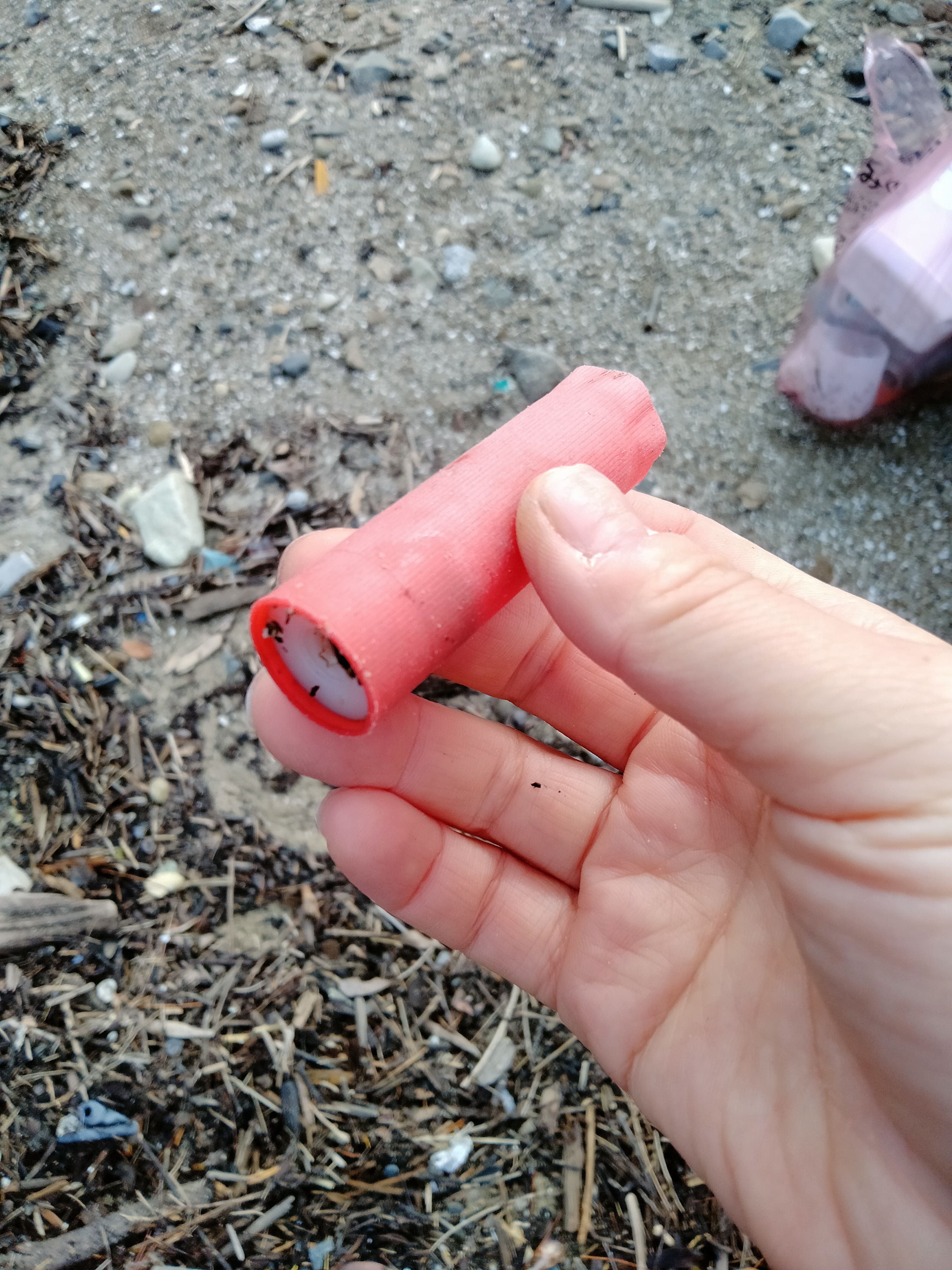 写真にある円筒形のもの、よく拾うのですが何でしょう。赤いものだけでなく、緑や青色のものもよく見かけます。