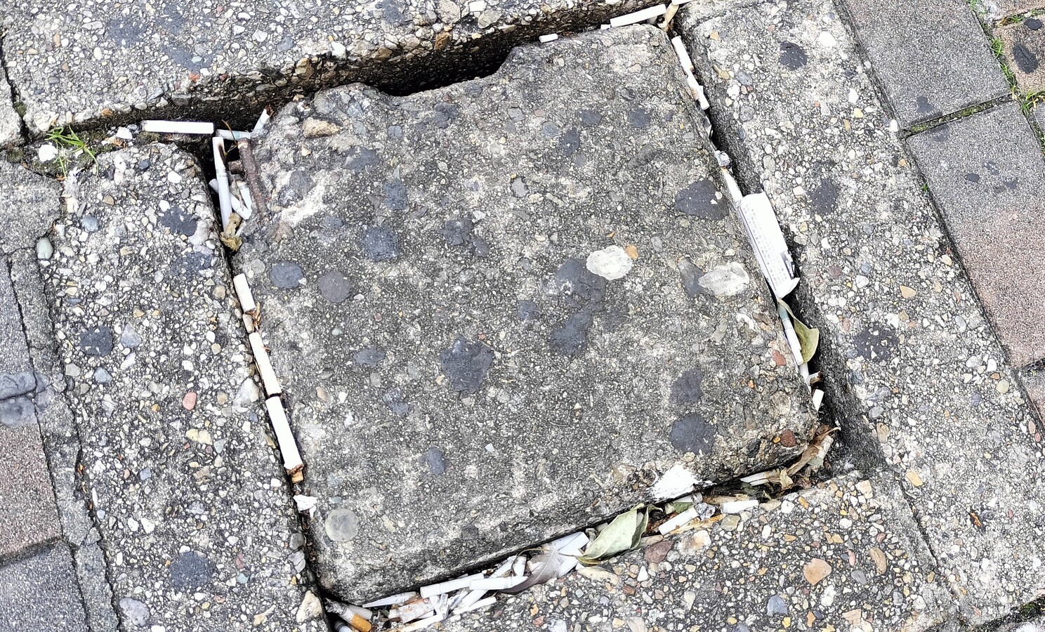 掻き出すと出てくる出てくる!!穴という穴全部に吸い殻がぎっちり埋まっていました。