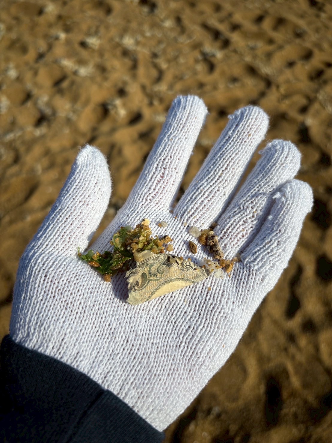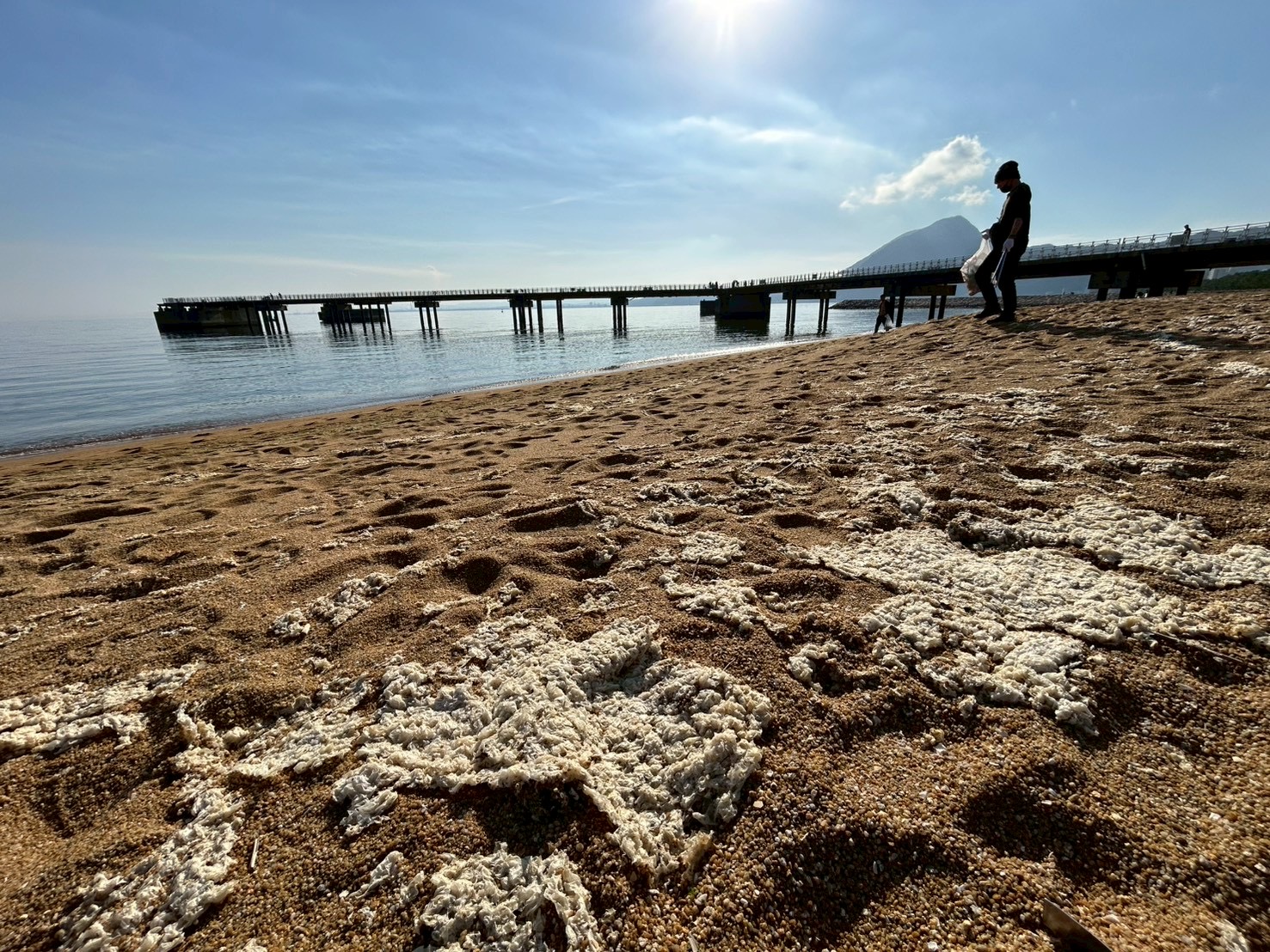 と言って、我々の目前から、海藻に巻き込まれたプラゴミを颯爽と拾い上げたおじさん。さすが、目が肥えてらっしゃる…。