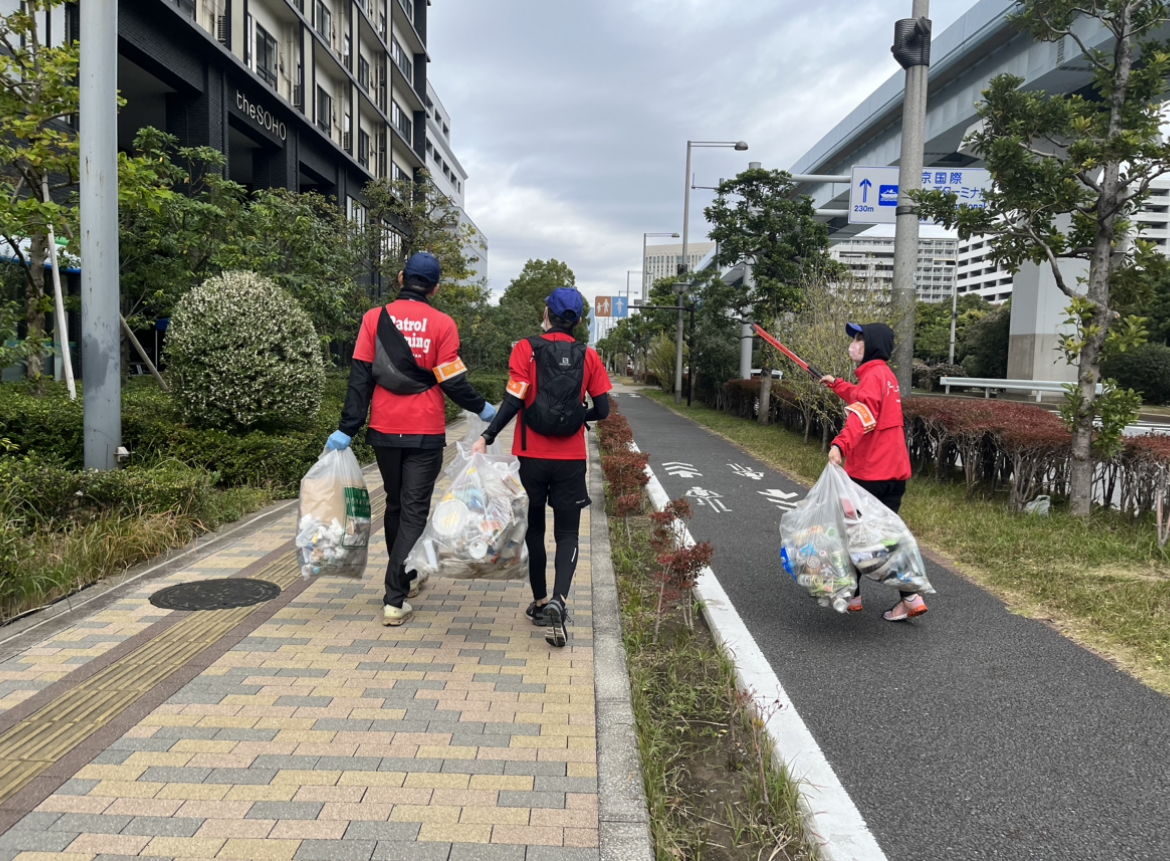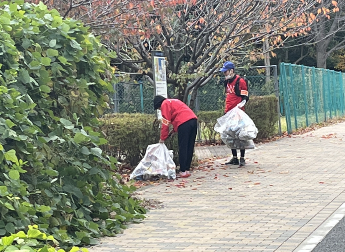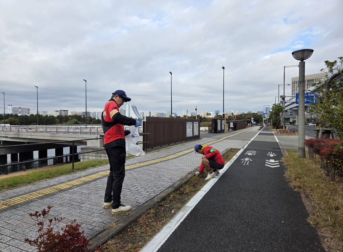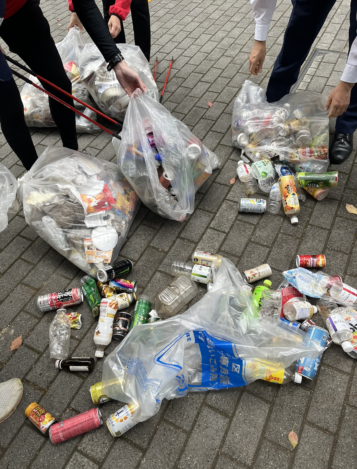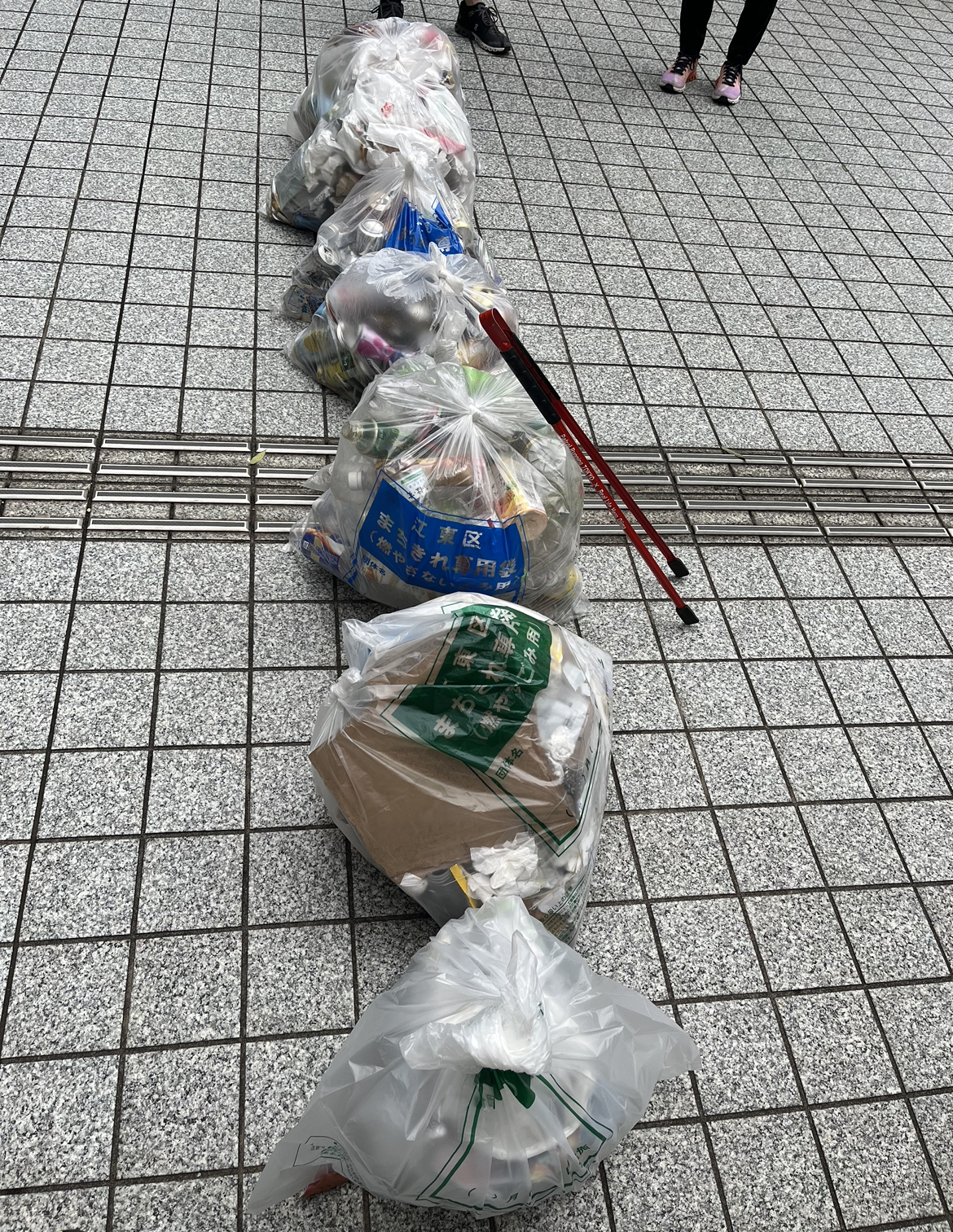 東京湾岸警察署の前の道路から、空き缶があり、最終的には、可燃3袋、不燃5袋となかなかの成果となりました。