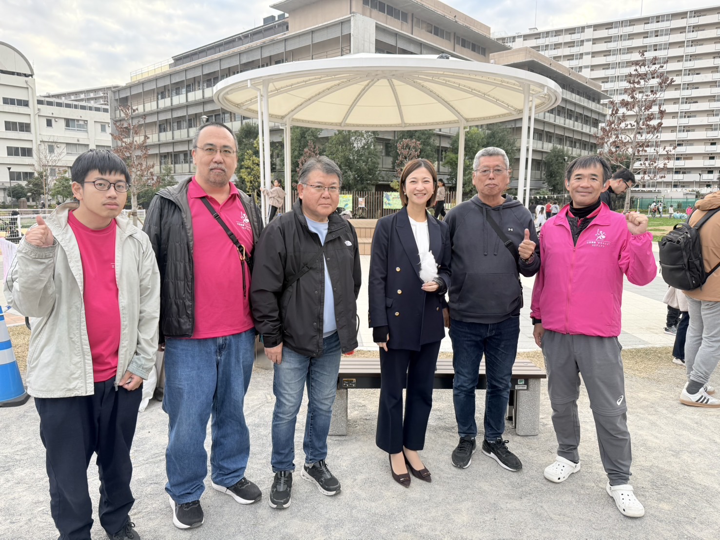 写真は、ブース前で運営スタッフのみなさんと並んで撮影したものです。仲間とともに活動することで、地域とのつながりをより強く実感できた一日となりました。