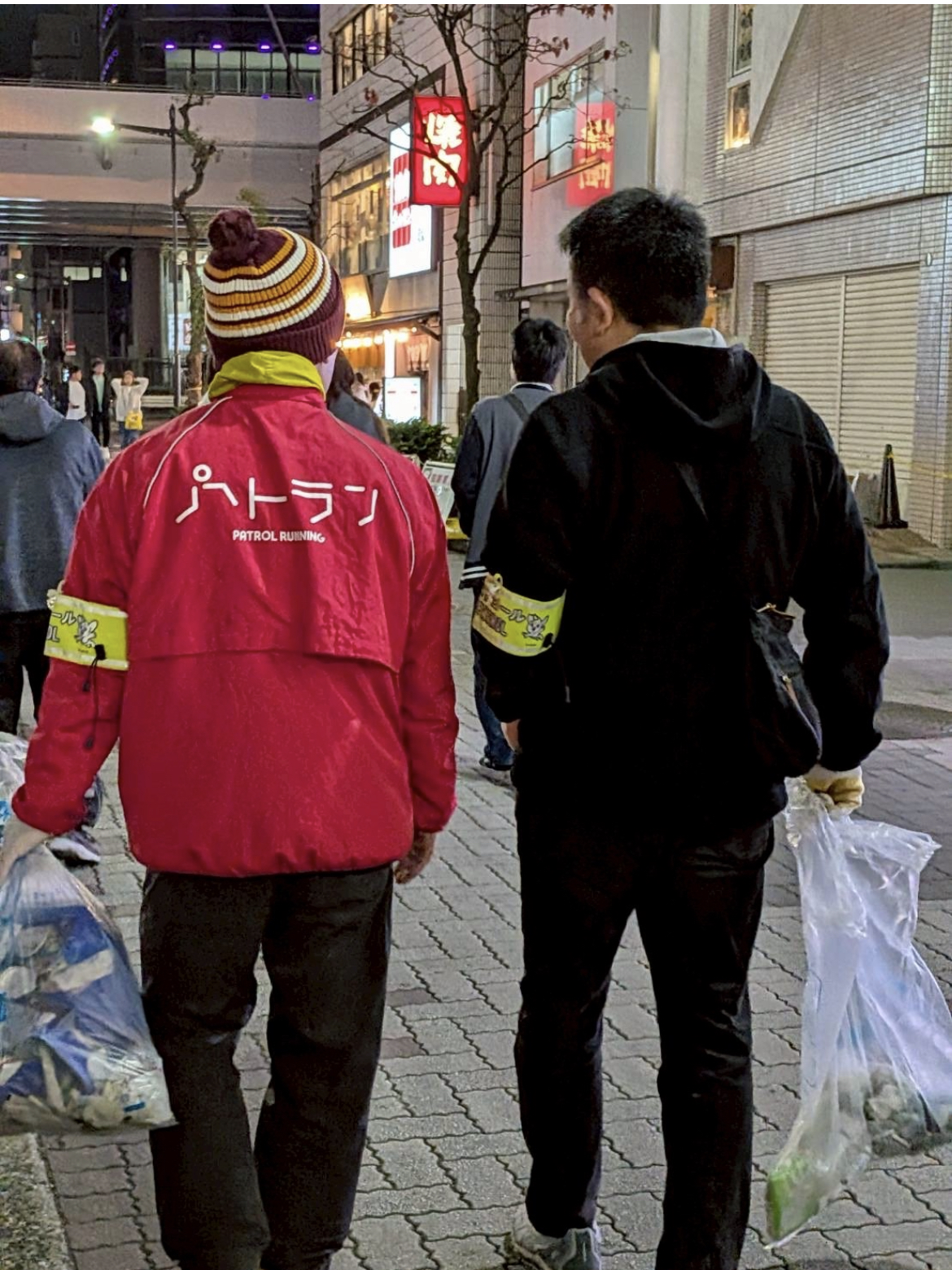 星屑拾いでは、「ゴミがゴミを呼ぶ」という場所があり、全員で集中して拾いました。防犯講習でいう「割れ窓理論」です。街のパトロールにはいろいろな方法がある。それを安全かつ楽しくやるのがパトラン東京です。
