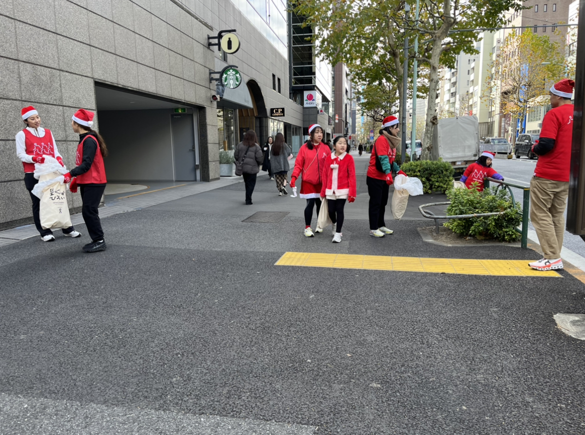 約一時間の活動でしたが、みんなで気持ちよくまわることができました。一部のホームページで開始時間に誤りがあって、終わり頃に来てくれた2人と一緒におかわり星屑拾いして終了となりました。おかわりの時は、代表も一緒4人でまわりました。本日、サンタしてくれたみなさんありがとうございました。