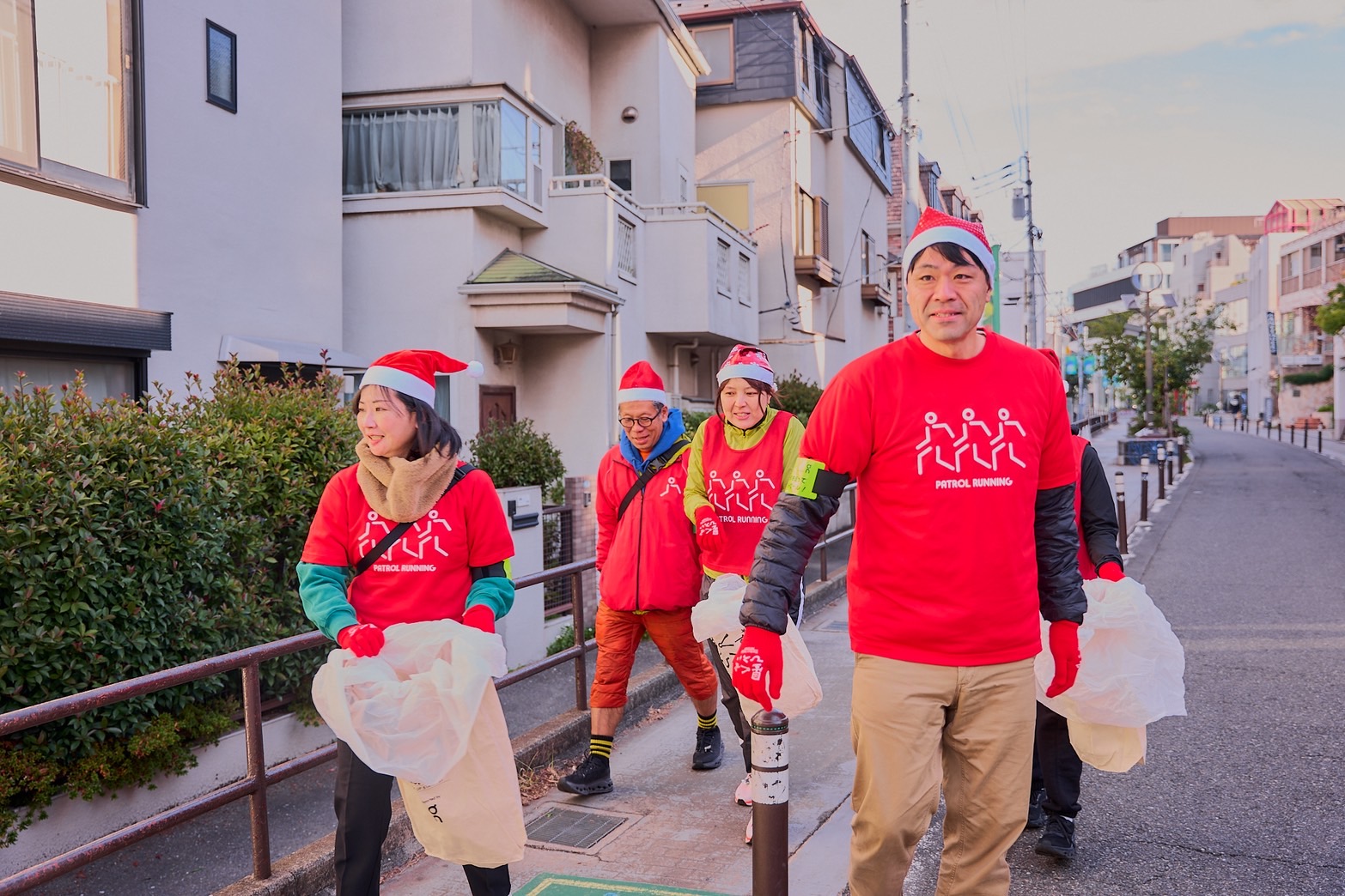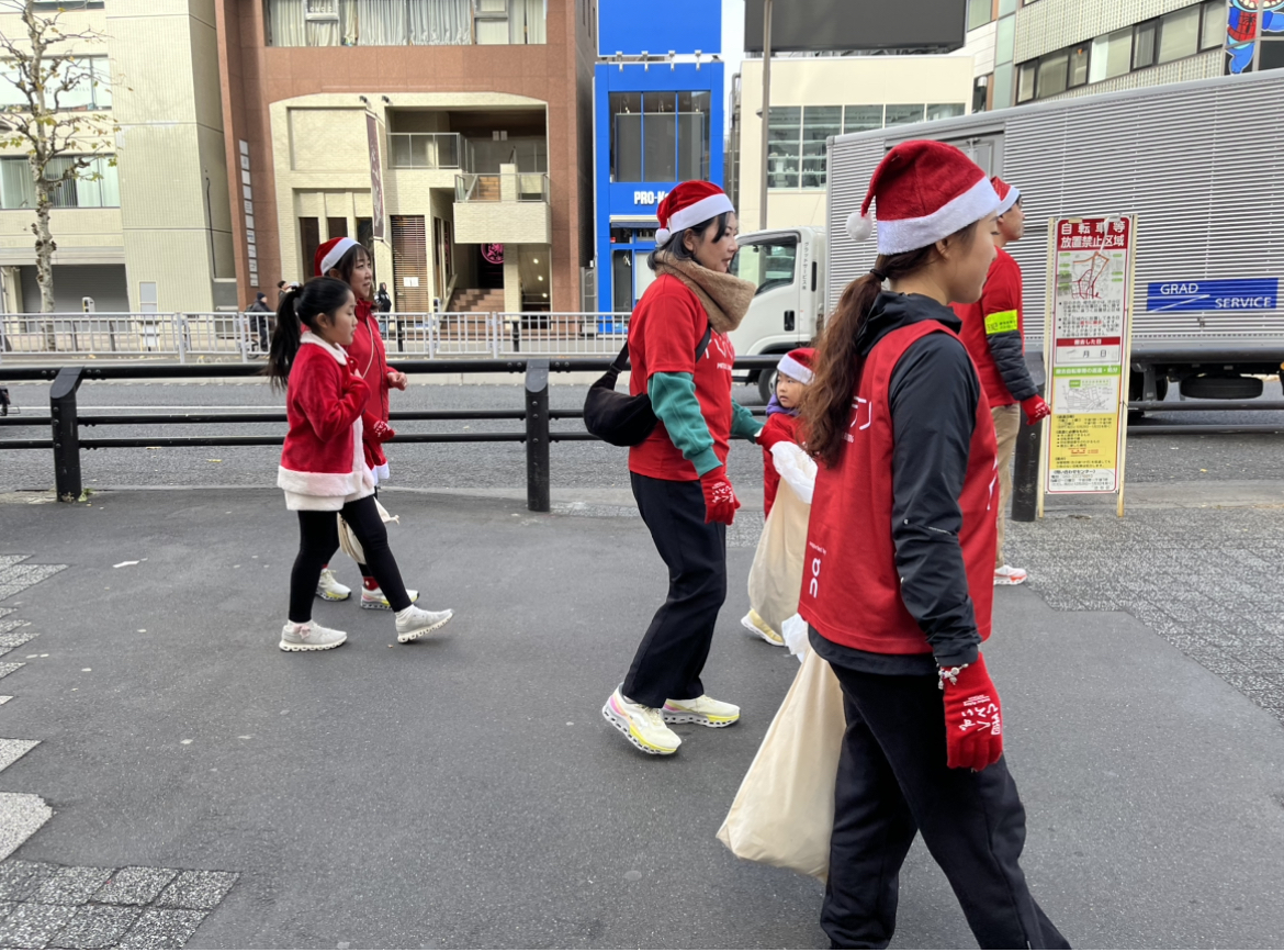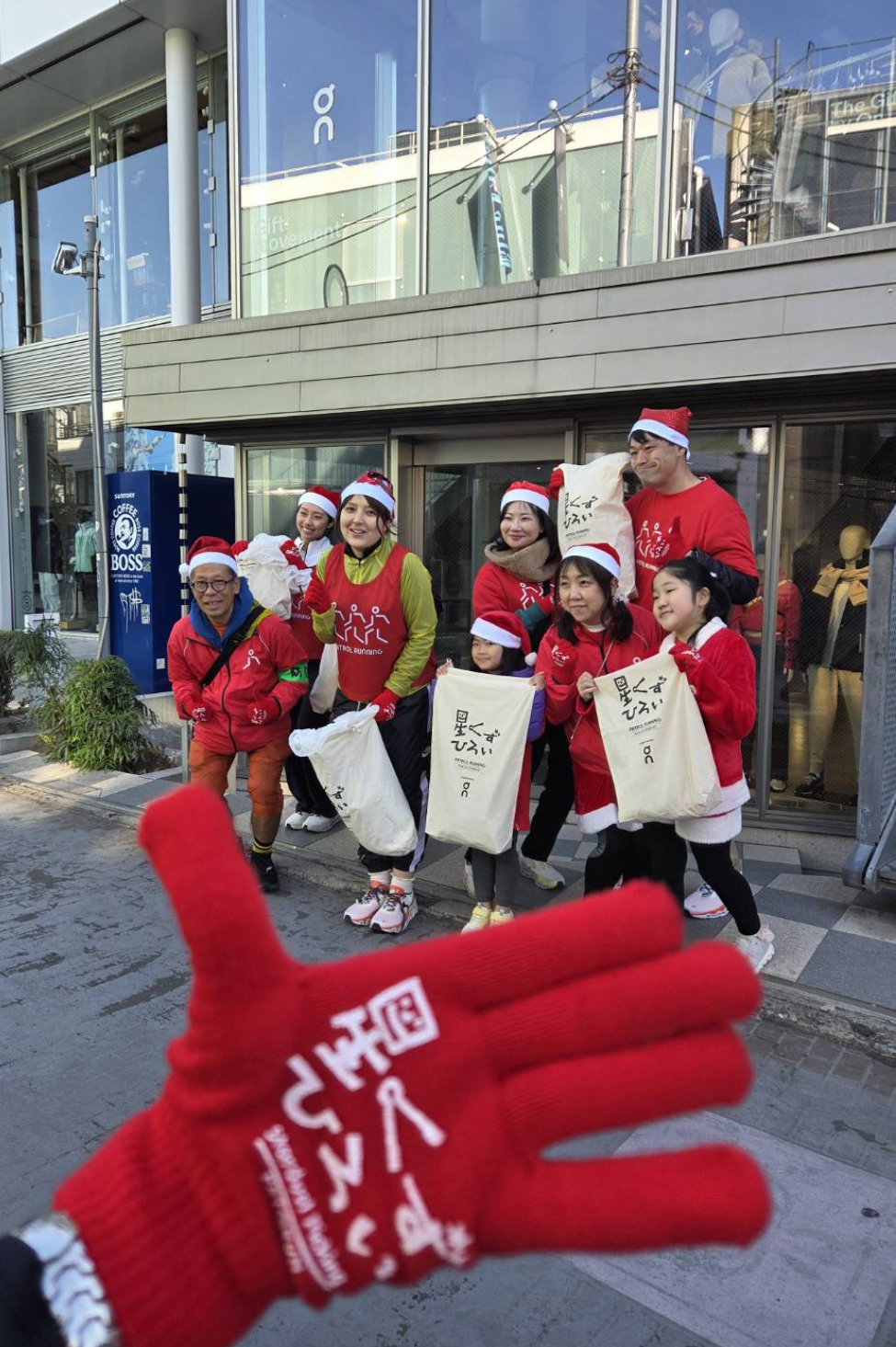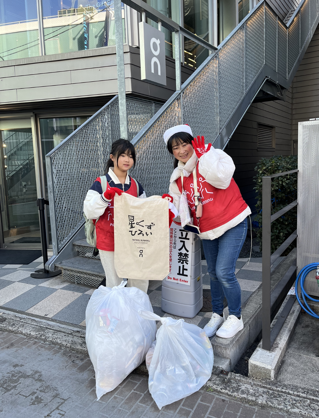 ランニングしてまわるチームと星屑拾いに分かれて活動しました。星屑拾いとは、パトラン東京では、ゴミ拾いをそう言っています。ポジティブな気持ちで活動するための工夫かな。