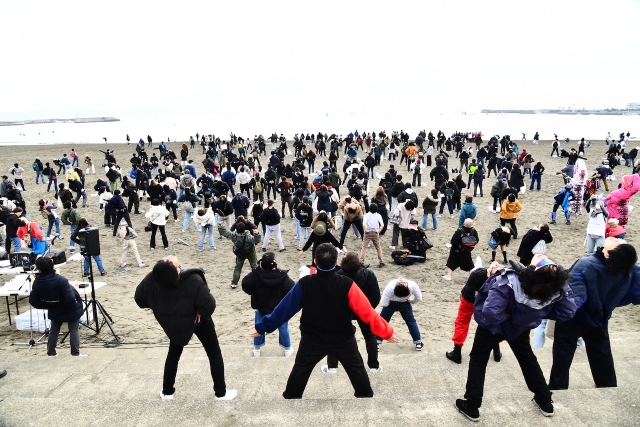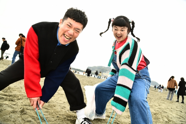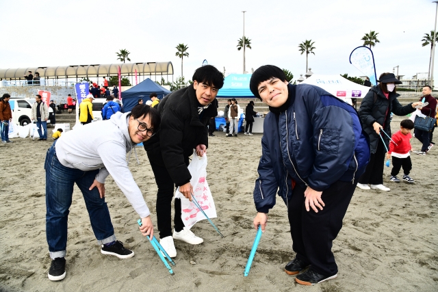 年内最後の「海さくらゴミ拾い」5組の芸人さんと海洋戦士シーセーバー、そして皆様と思いっきり楽しくゴミ拾いをしました。