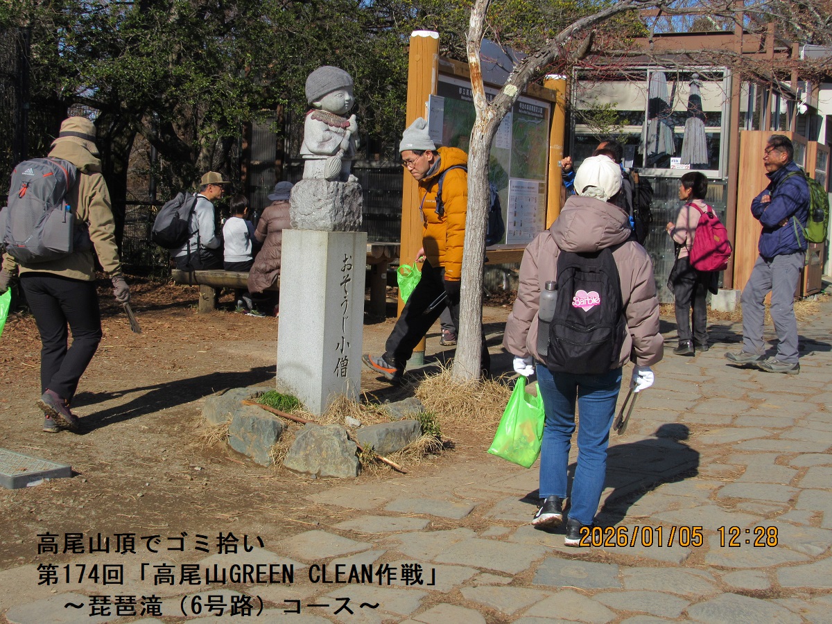 正月三が日が過ぎましたが、高尾山頂や薬王院はかなりの人出です。人ゴミの割に落ちているゴミは少なく、高尾山頂のシンボル「おそうじ小僧」周りのゴミを探して拾いました。