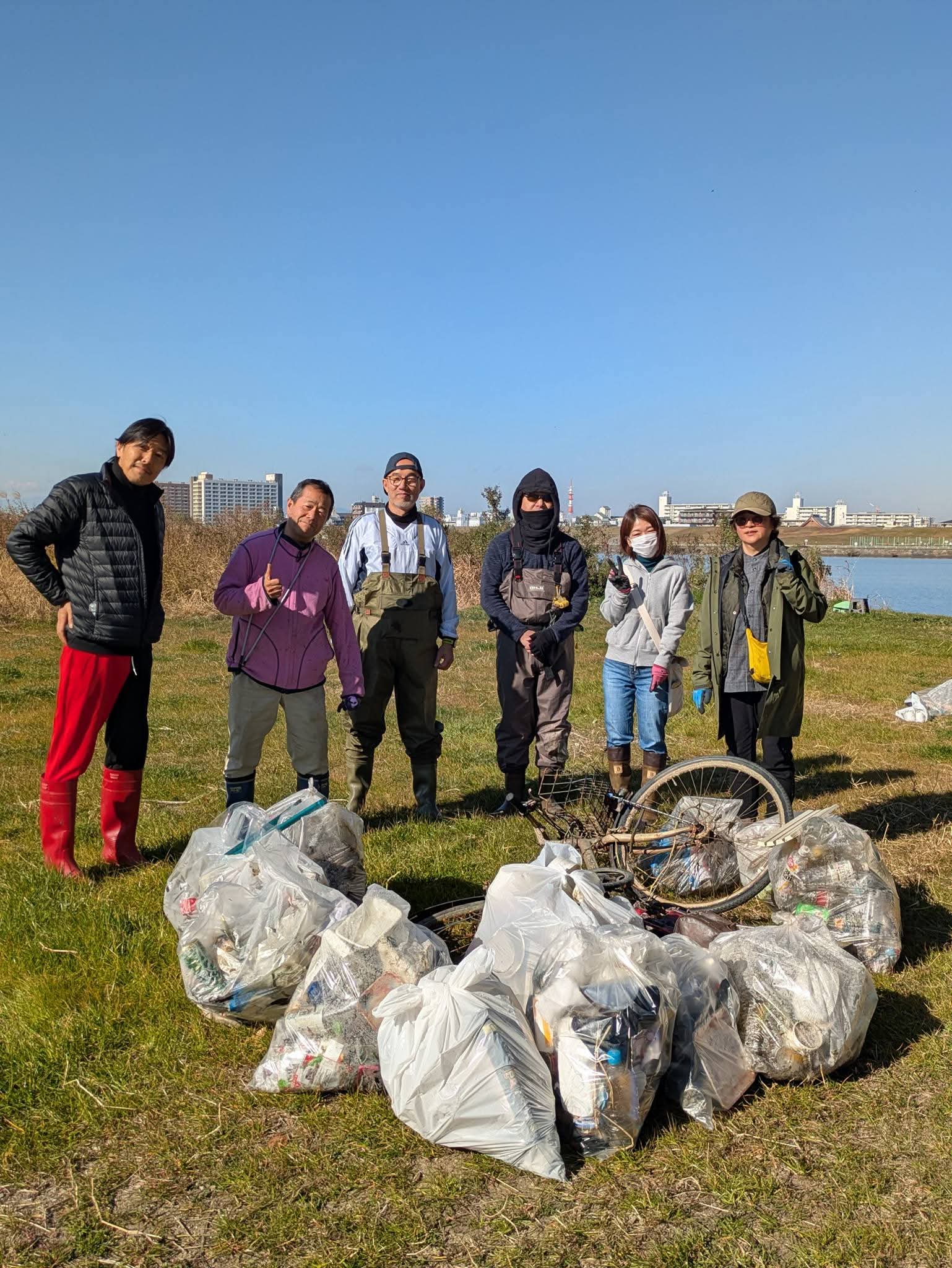 令和8年度最初の淀川河川公園清掃部隊「クリーンアップレンジャーズ」は、レギュラーレンジャー4名の他にゲストレンジャーが2名、ヘルプレンジャーが3名で行われました。