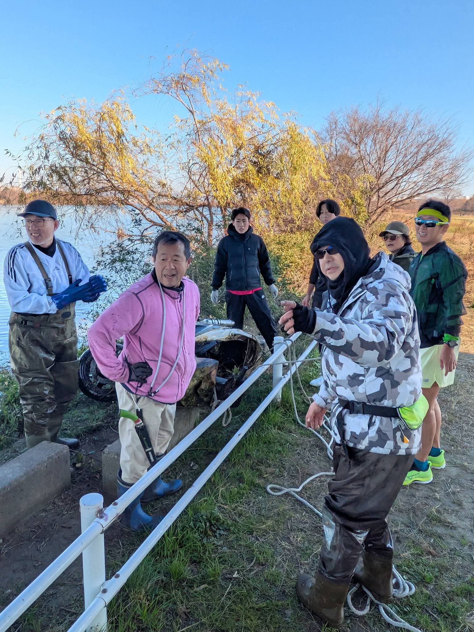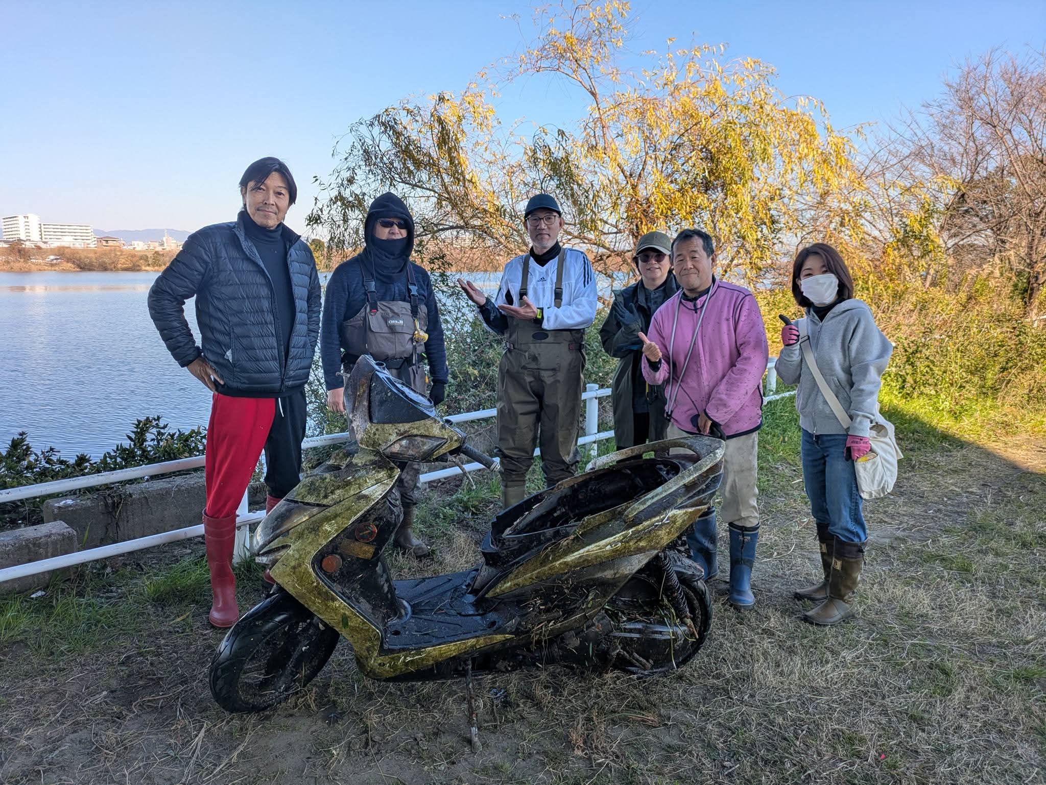 さらには、こちらもたまたま今日釣りをしていたハヤシトオルさんが、自転車やバイクを引き上げるのに力を貸してくれました。
