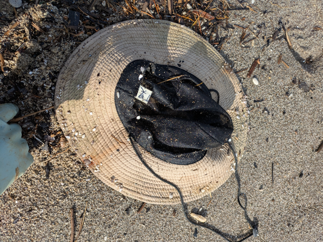 中国語で名前が書かれている帽子が流れ着いていた。