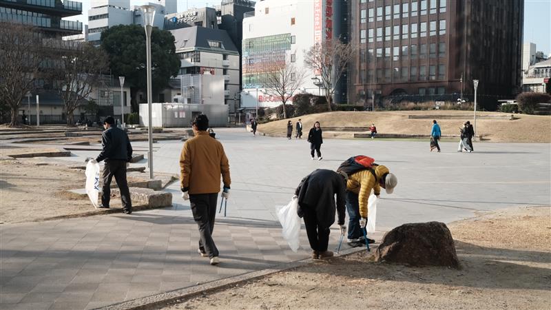 1月19日の朝、近隣店舗の方々と10名ほどで警固公園を中心に清掃活動を実施しました。