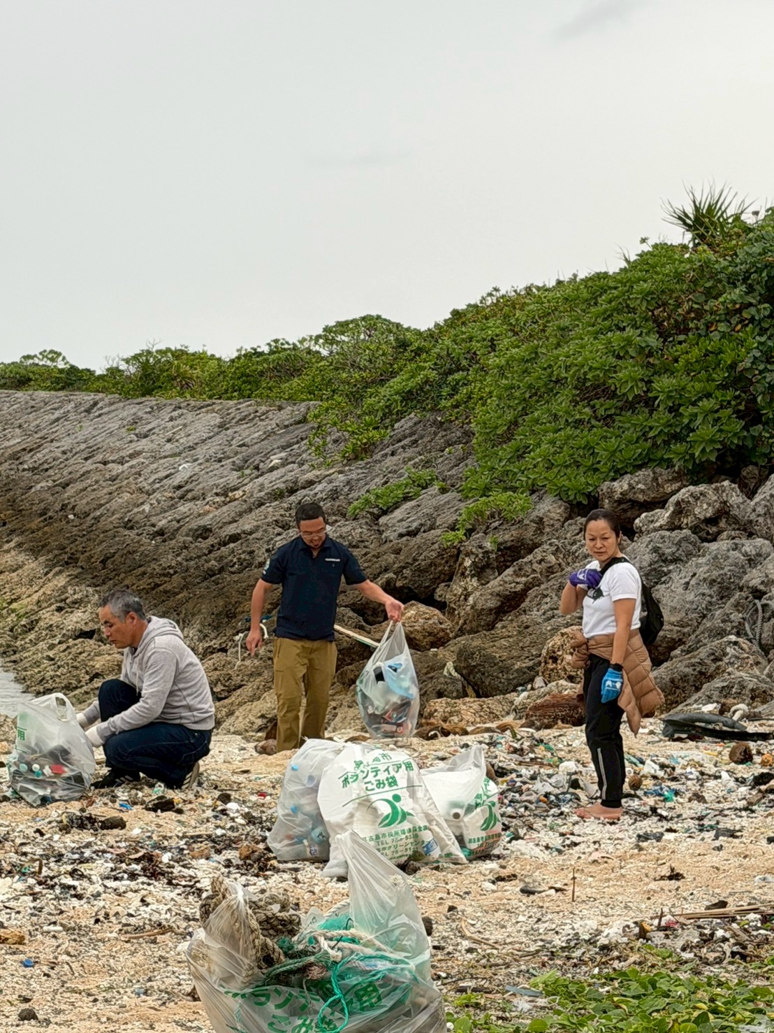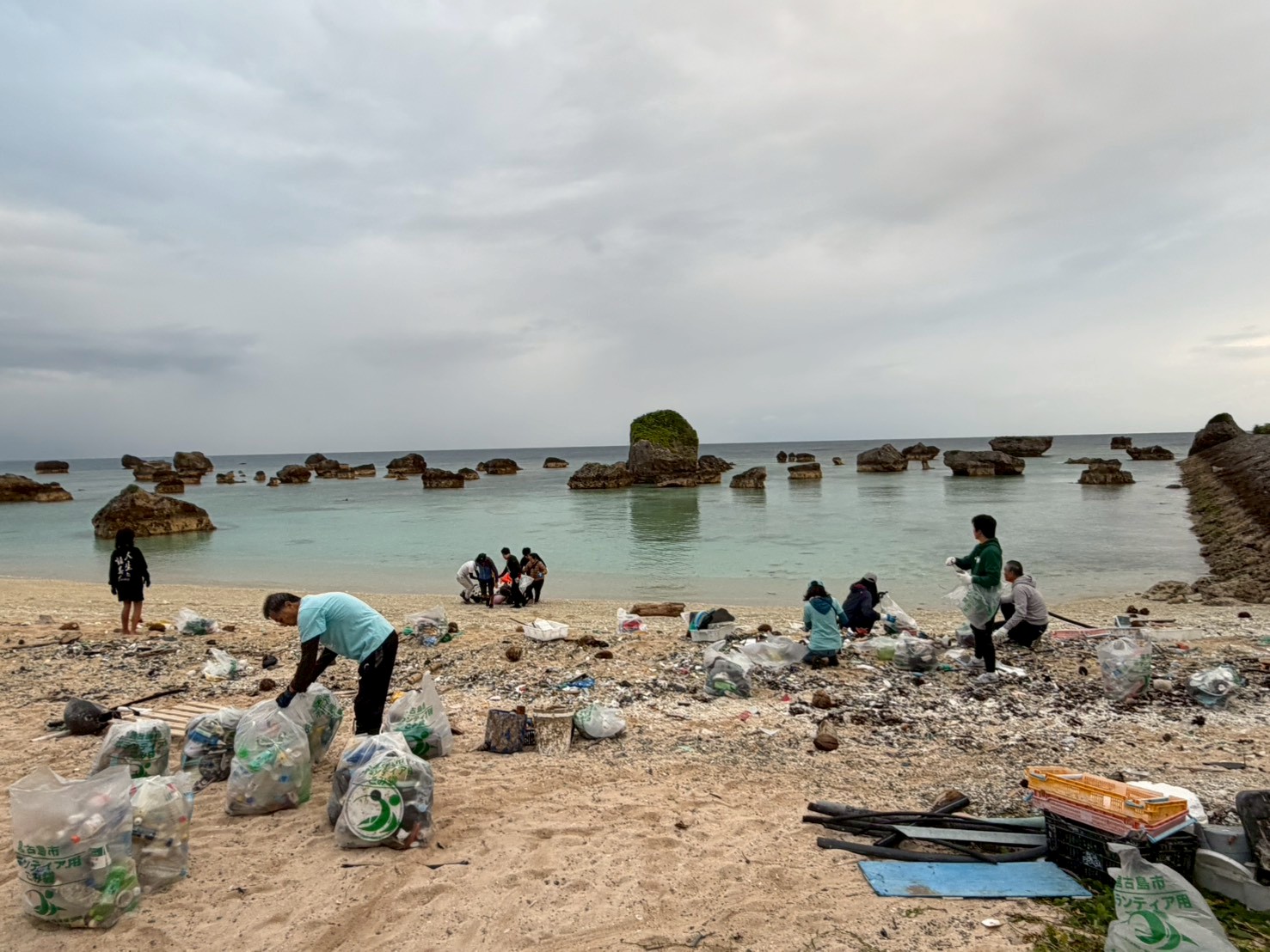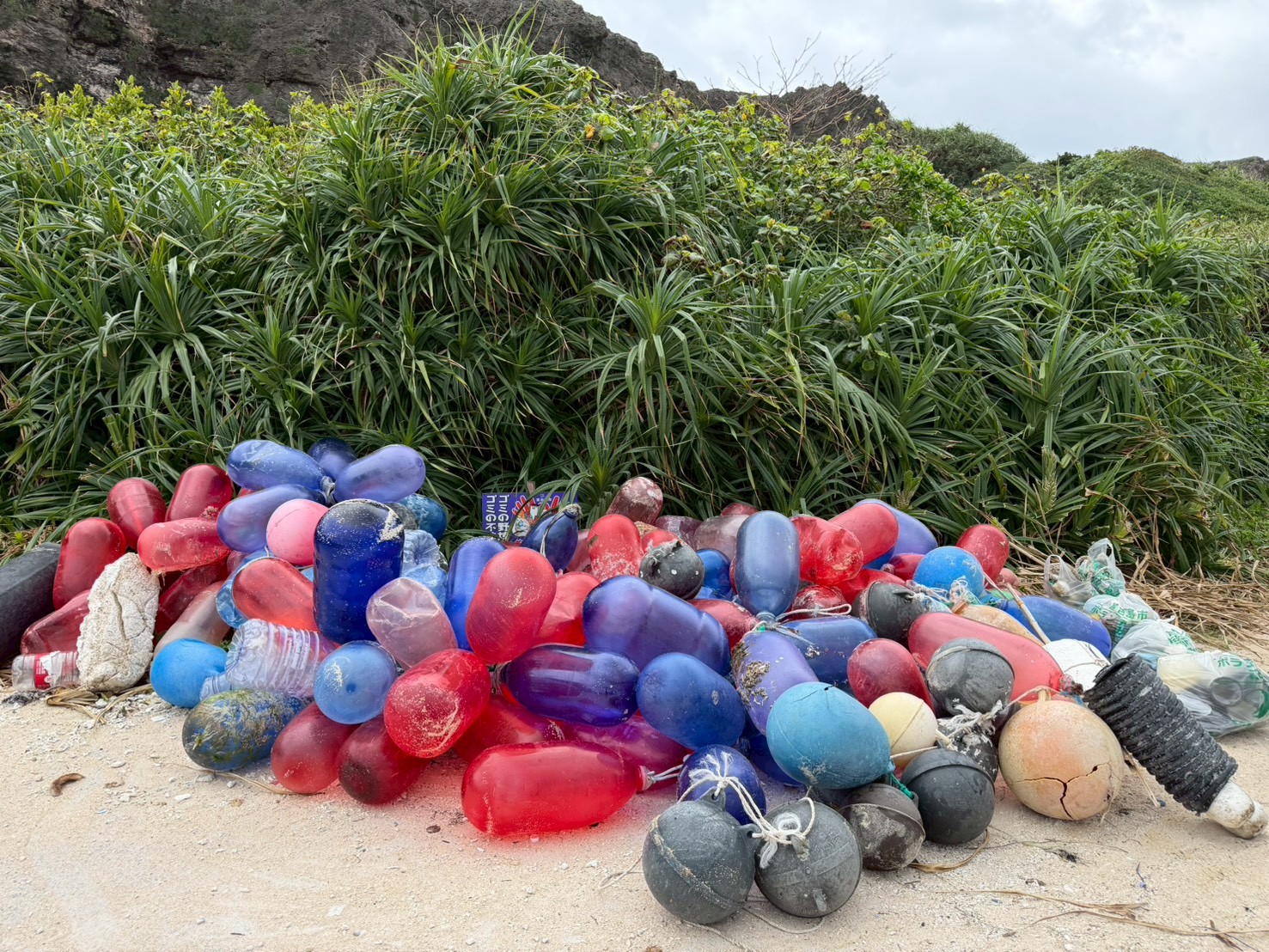 〇参加者 26人 〇回収したゴミ 燃えるゴミ 76袋 ペットボトル 23袋 漁具 4袋 缶 31本 ビン 47本 蛍光灯 9本 カラーブイ 117個 丸ブイ 31個 ライター 7個 注射器 1本 アンプル 1本