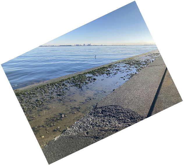 穏やかな陽の中、入船側まで足を延ばして、護岸の約2㎞を歩きました。 ゴミは少な目でしたが、流れ着いた枝をどけると、その下からマイクロプラスチックが顔を出します。 細かすぎて拾うのに一苦労でした。