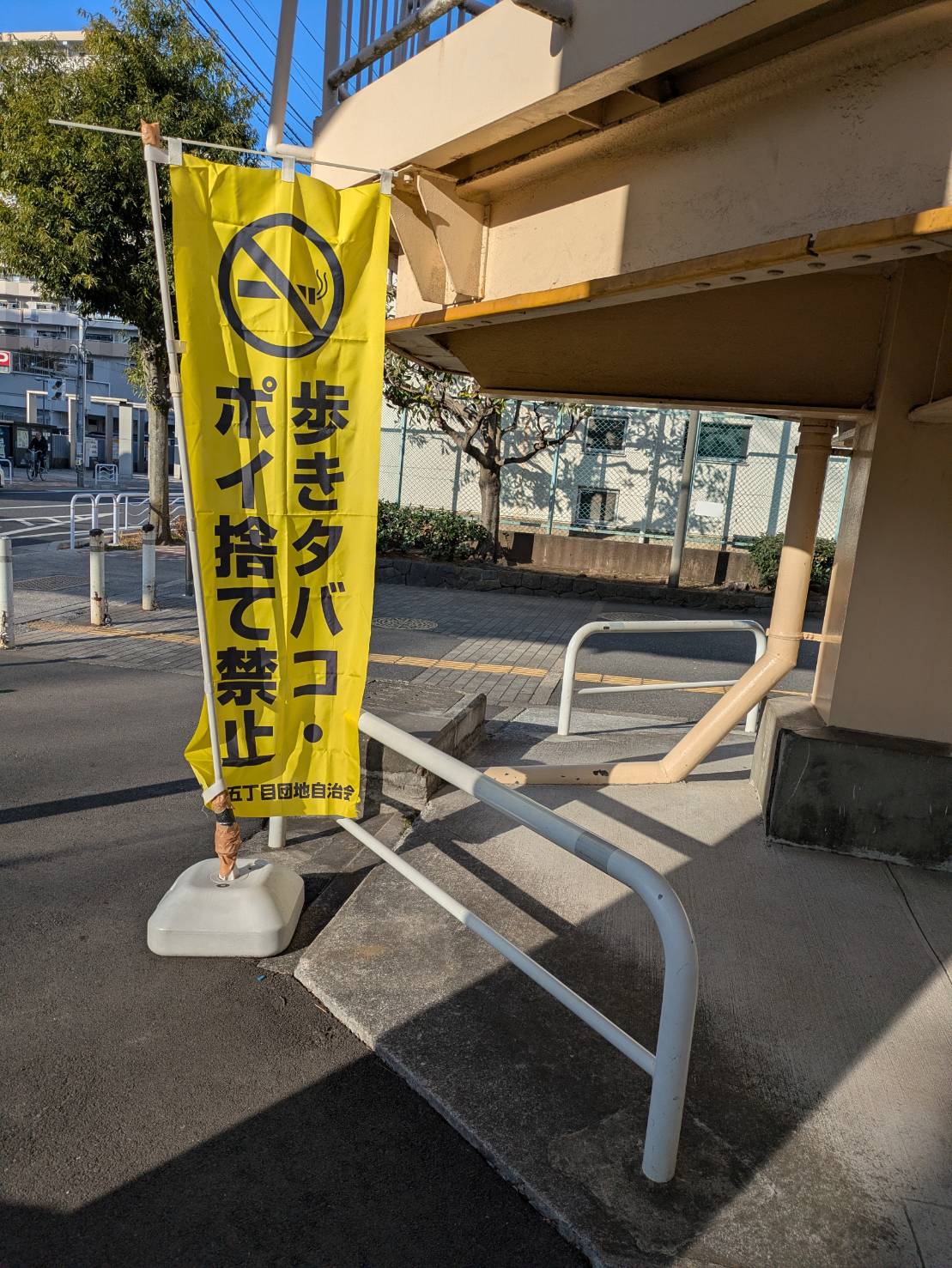 のぼり新しくなりタバコ吸い殻は減ったかも〜