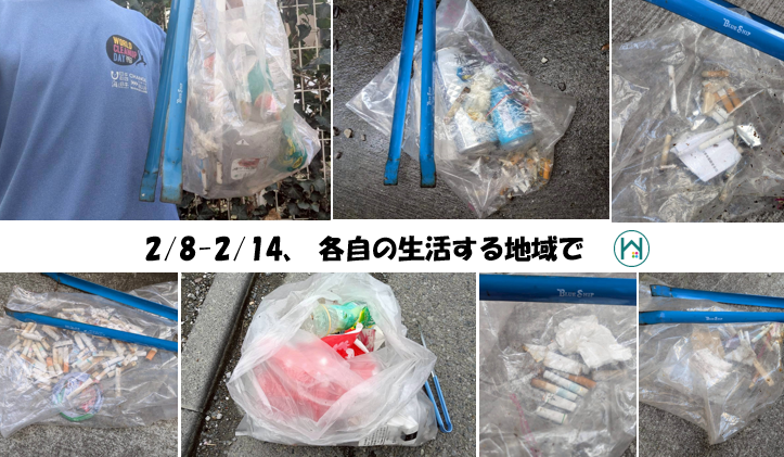 2/8(日)~2/14(土)を活動期間として、参加者それぞれの住む地域のゴミ拾いを実施しました。