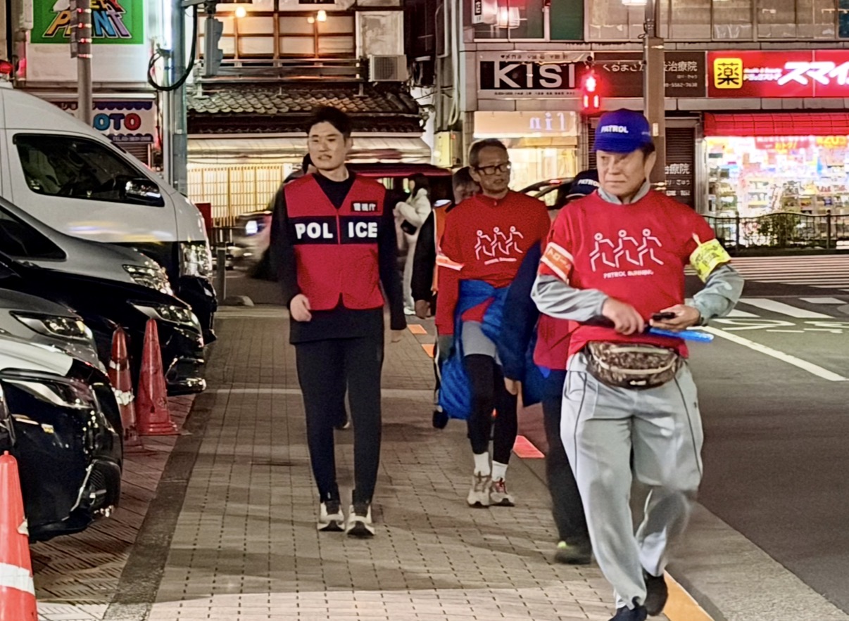警察官と区職員もランニングで街をまわりました。