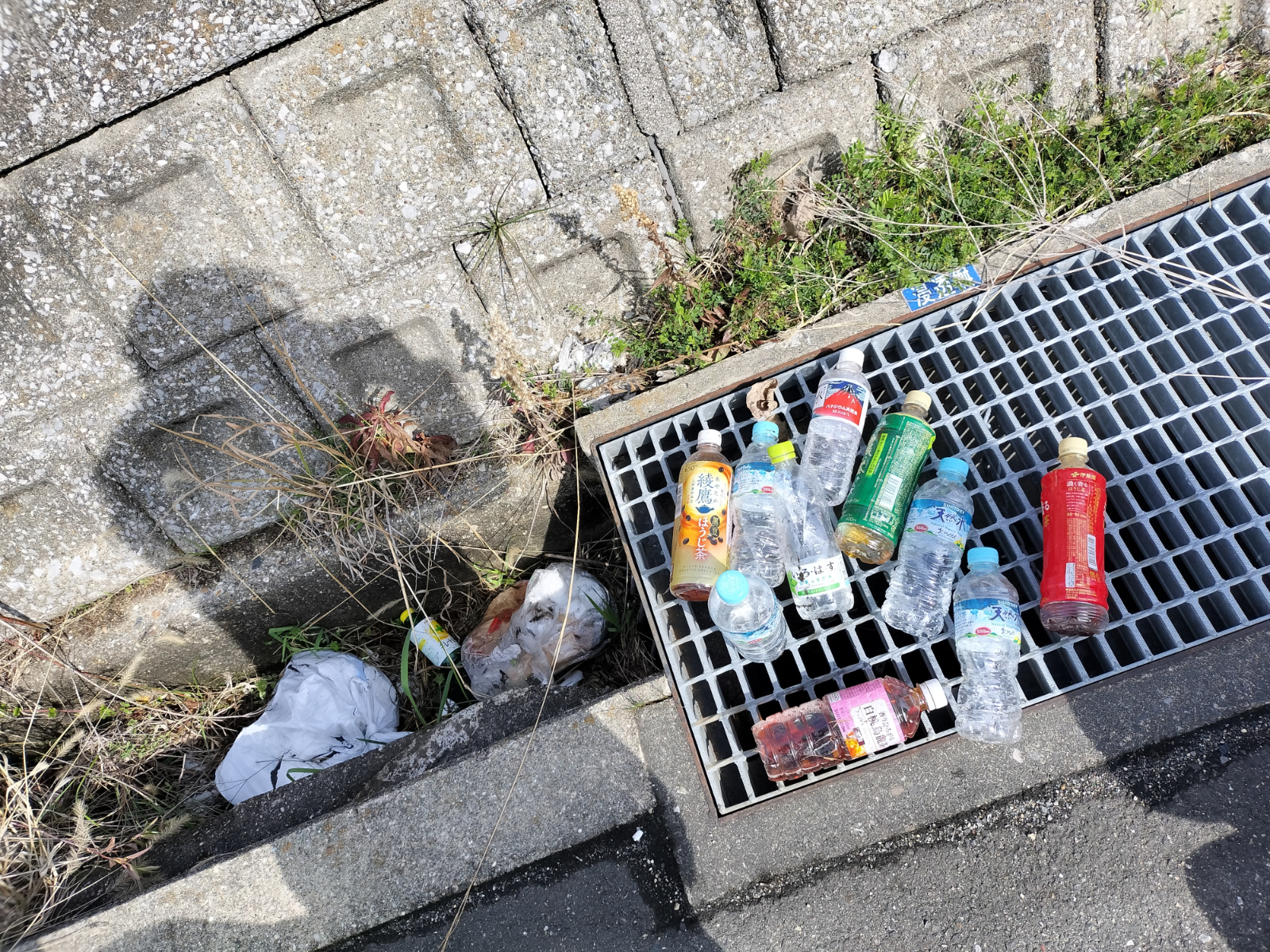 大量のゴミで埋め尽くされた堤防沿いの排水溝をついに