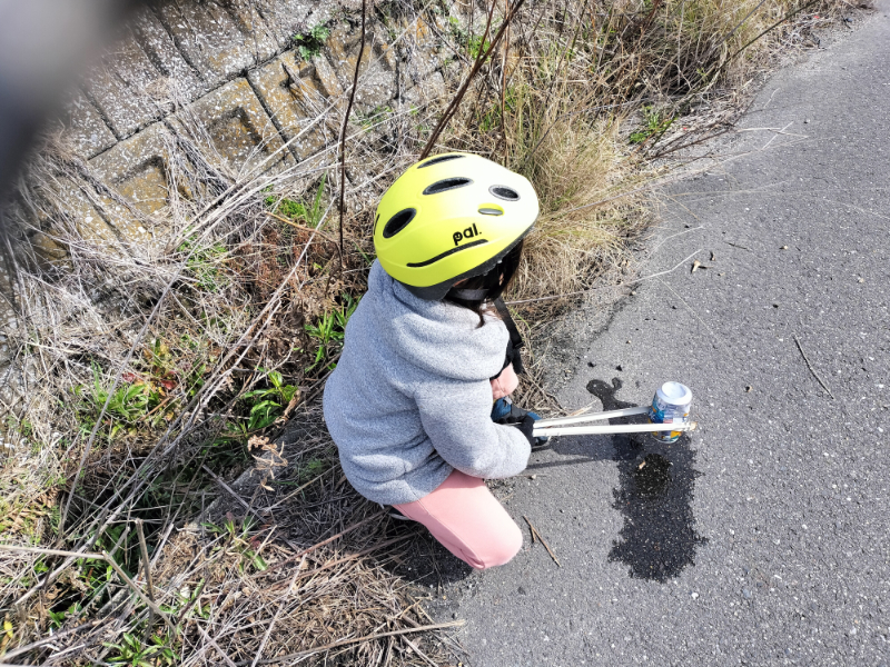 ↓あいちゃん、缶の水切りはもう手慣れたものです(≧∇≦)