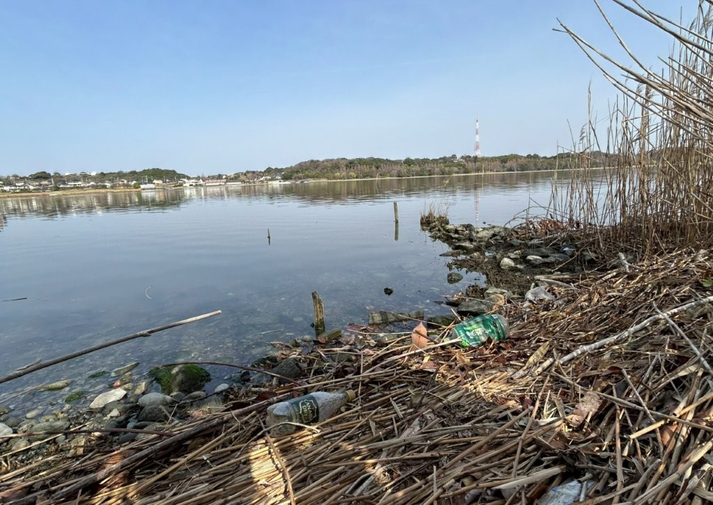 水辺のペットボトル、、