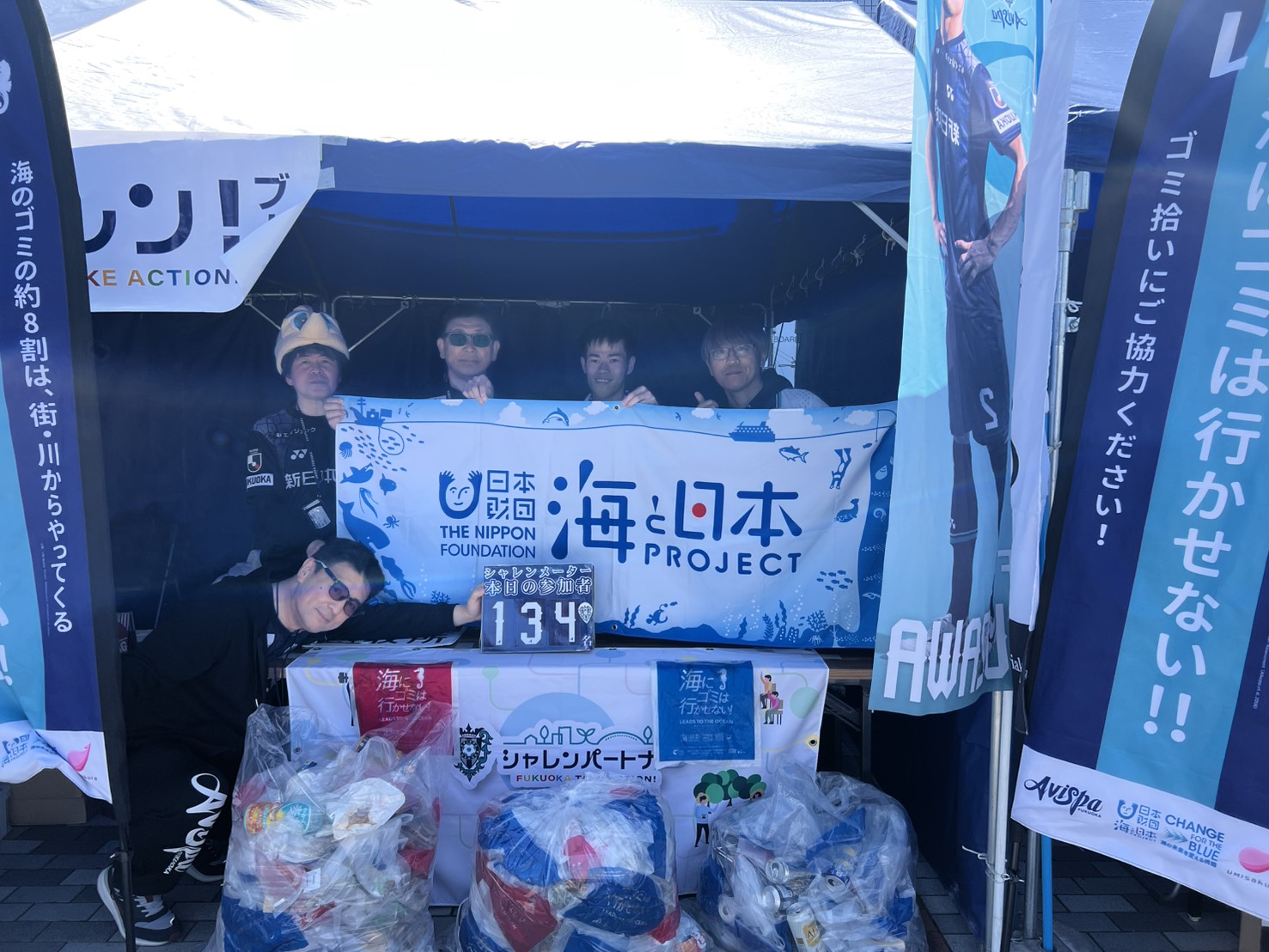 当日は、ユニフォームスポンサーの新日本製薬様が企画運営を行う「Fukuokaクリーン大作戦」において、LTOのプロジェクト目的などを参加者にお伝えしながら、森林と海を守る活動として啓発を行いました。