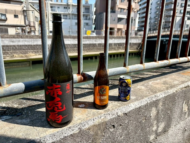 帷子川沿いのポイ捨てが酷い所には、一升瓶・ビール瓶・空缶が
