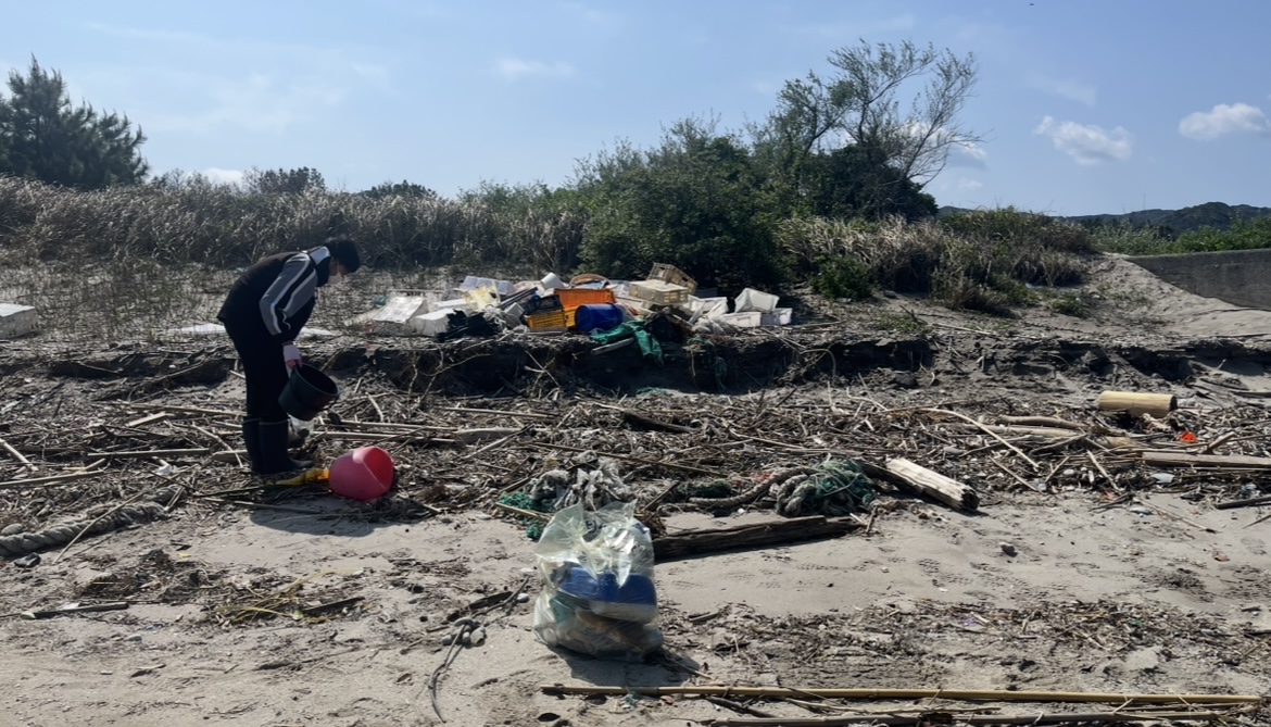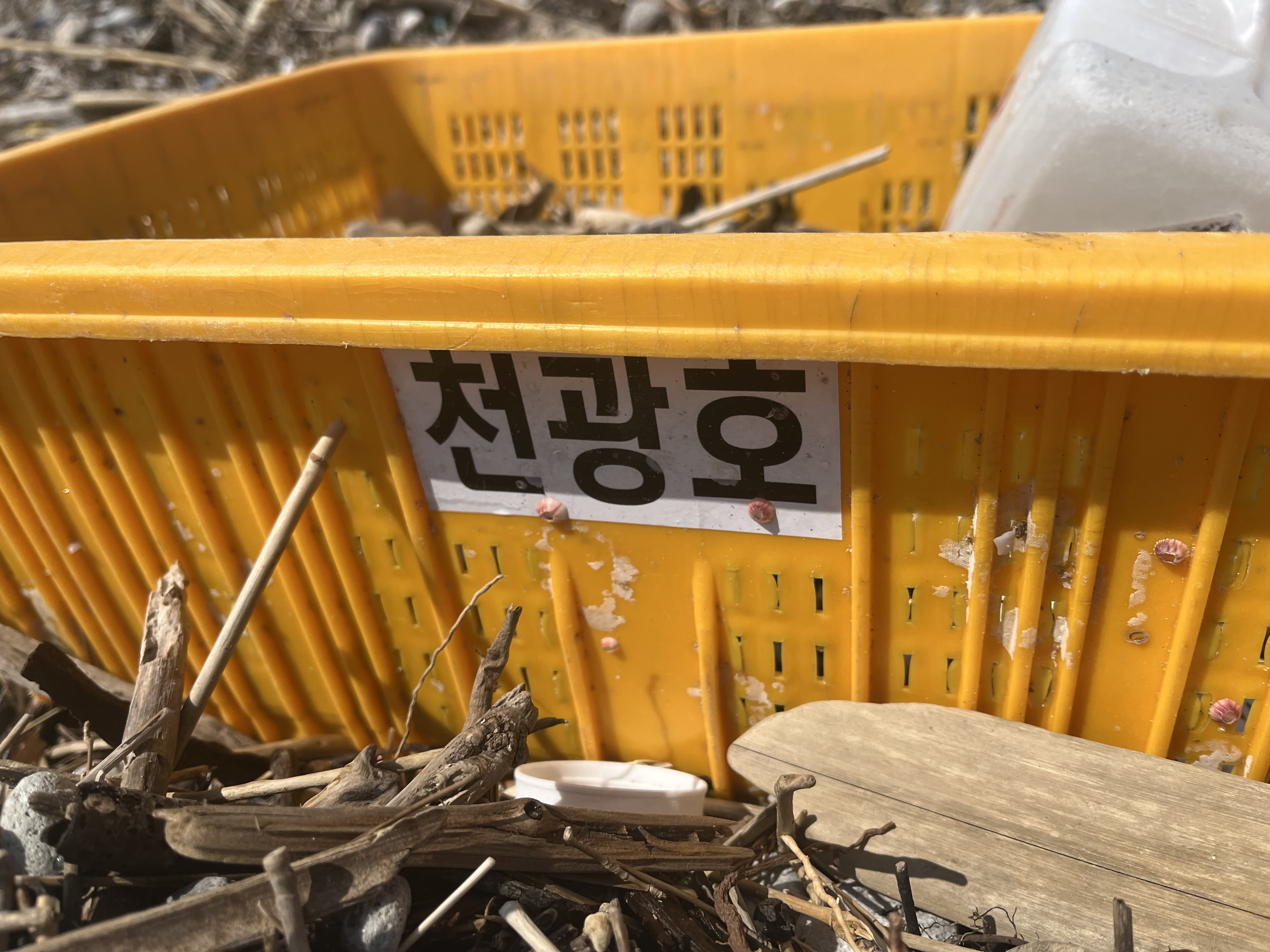 この場所はやはり漁具が多く流れ着いており、外国語の記載があるものがみられた。
