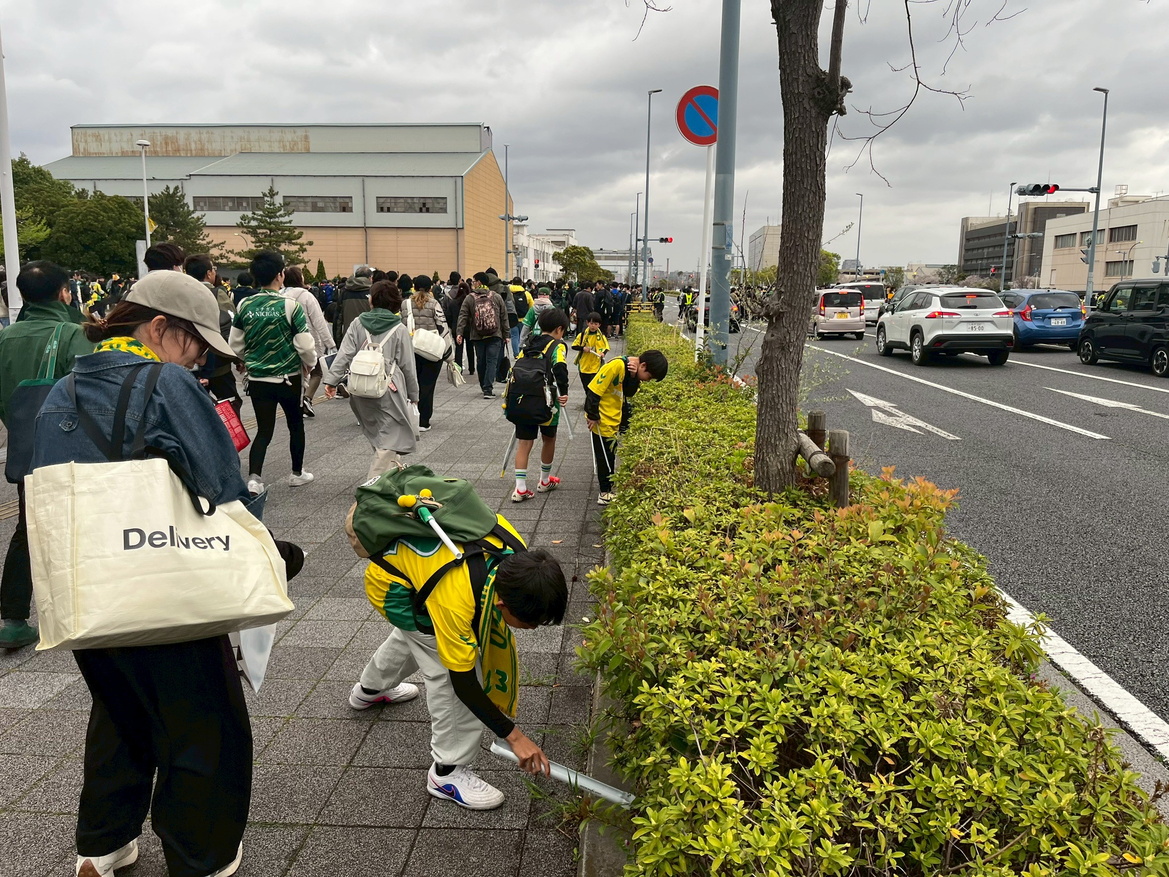 活動には初めて参加してくださる方の姿もあり、リピーターの方々とともにスタジアム周辺のゴミを丁寧に拾い、街をきれいにする取り組みにご協力いただきました。