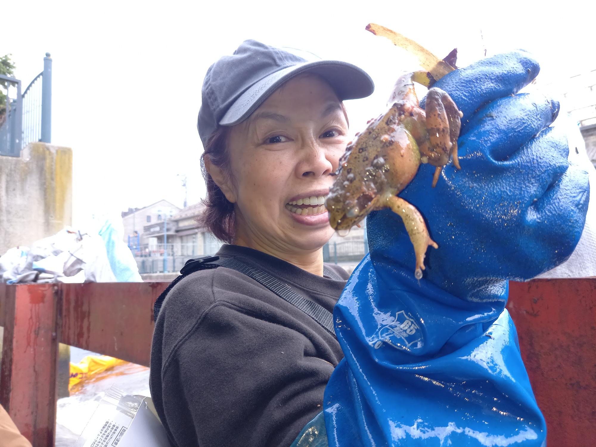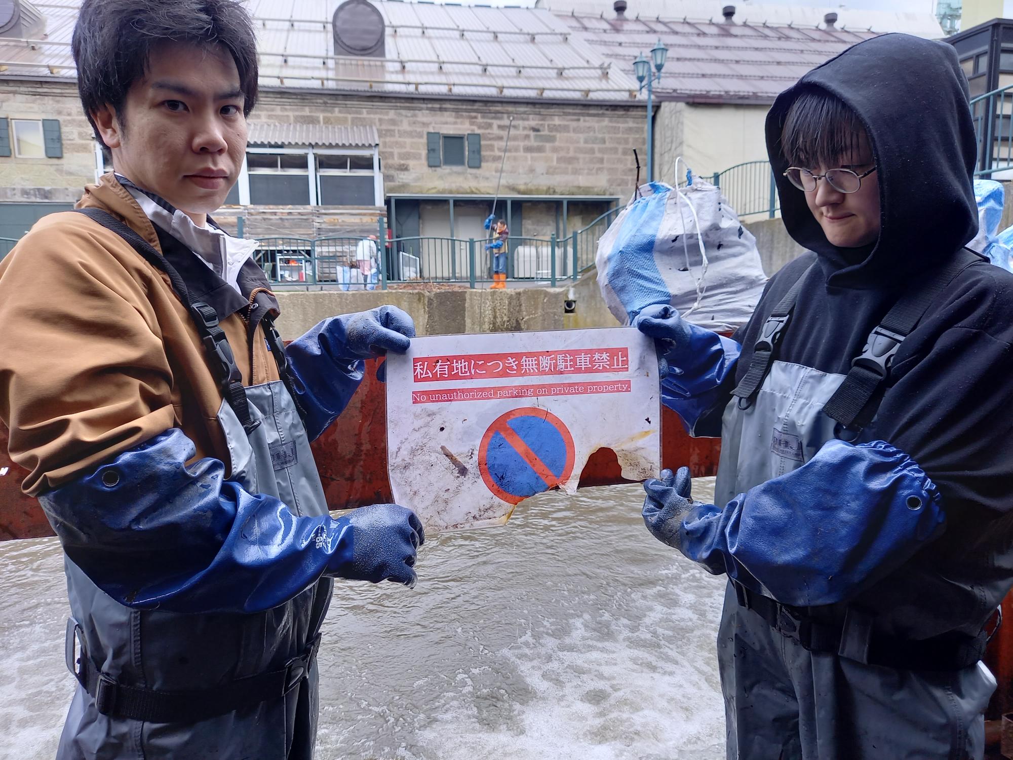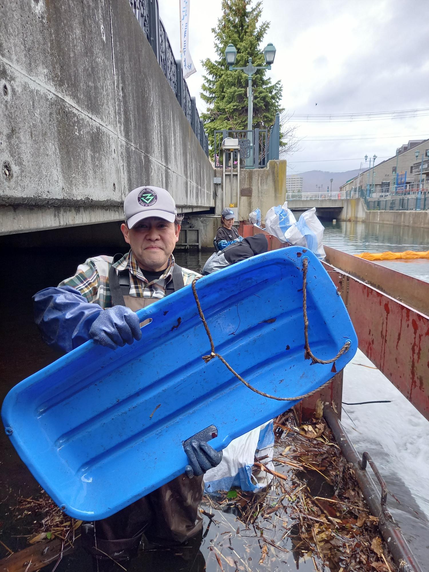 今朝は初参加者を含む5名が河口に入ったので、冬に溜まった枝の撤去が捗り、いよいよ川底が見えるようになりました。