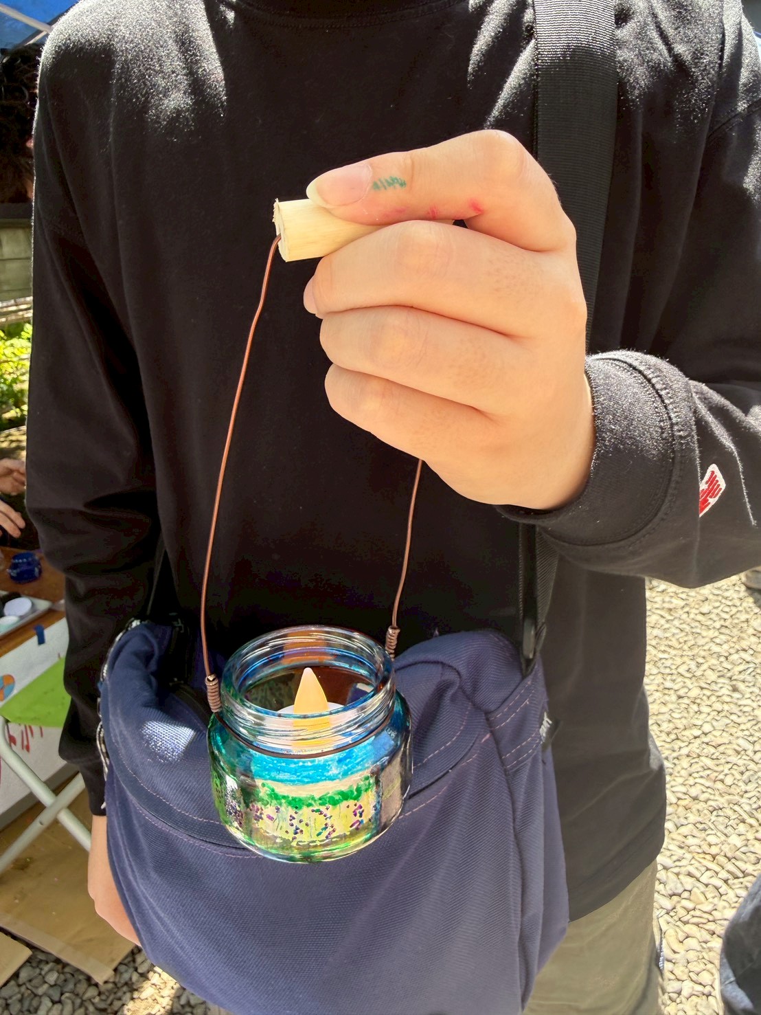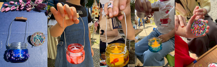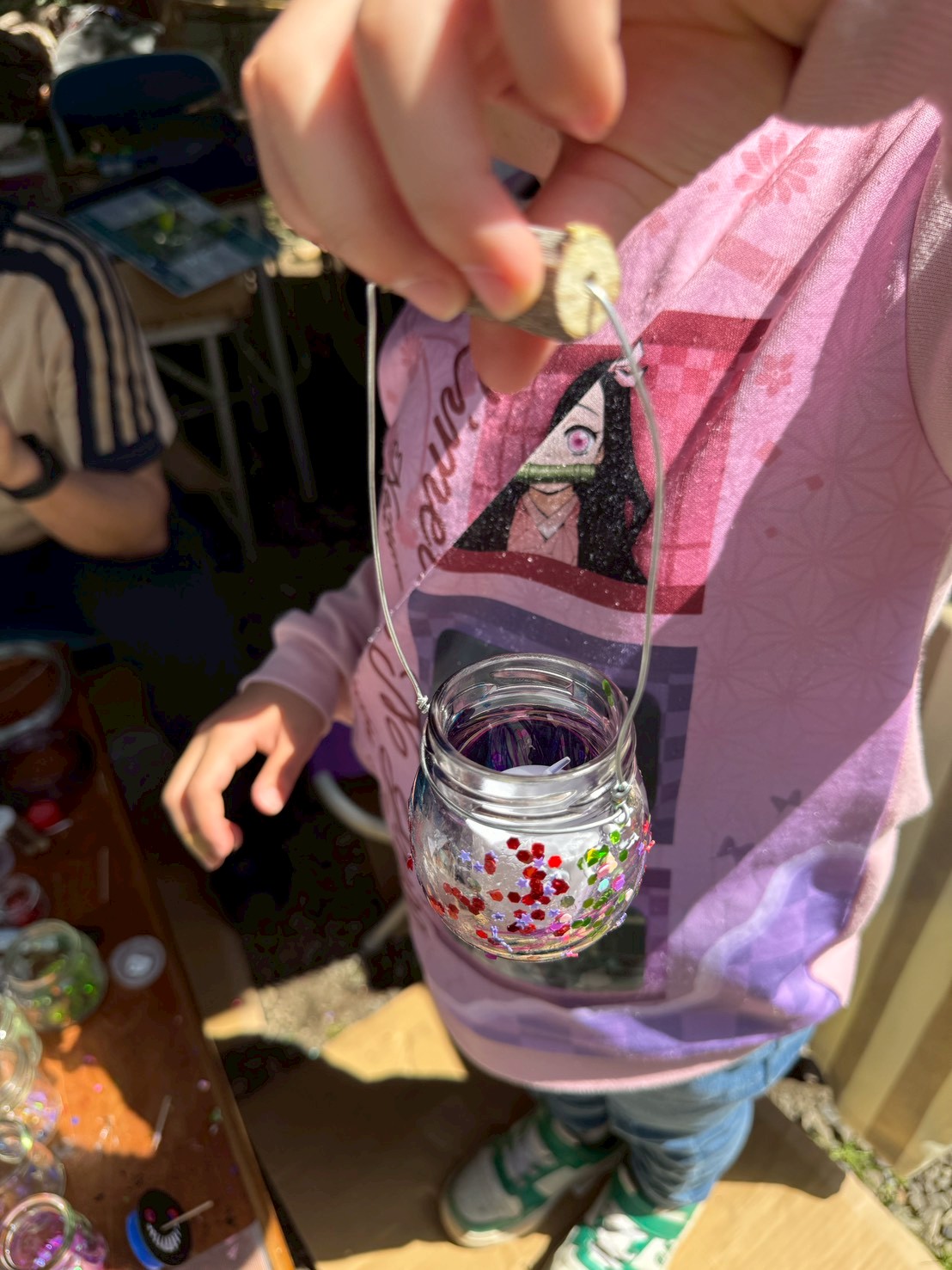 2026年4月19日、初夏の陽気でしたが藤棚の下は涼やかな風が抜け、アップサイクルのコマ作りとランタン作りは大盛況でした。みんなのオリジナリティあふれる素敵な作品が、沢山うまれました。