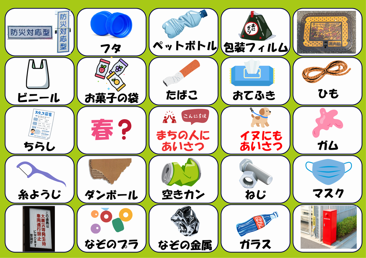 ▼毎回盛り上がる「ゴミ拾いビンゴ」。ゴミ拾いが宝探しに変わる瞬間♪