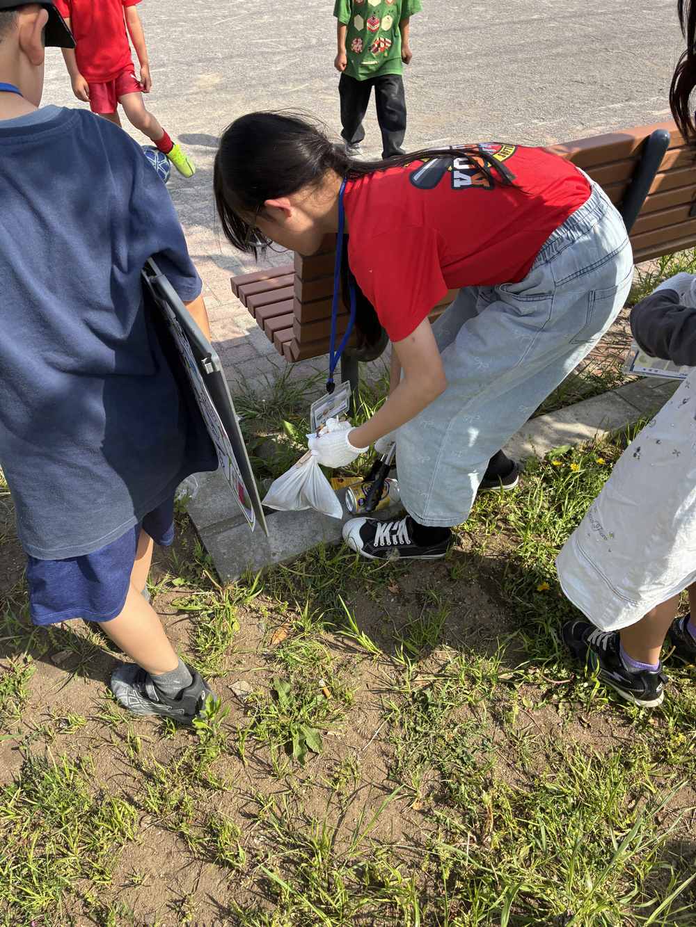 ゴミ拾いビンゴでは、最後になかなか会えなかったイヌのお散歩にも出会え、みんなであいさつできてこどもたちは大喜び。