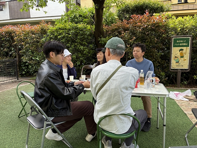 活動後には小6生と区議さん、学生さん、町会長さんとこれからの活動と地域についての"タウンミーティング"。開かれた公園で開かれた話し合い、とても自然で明るい時間となりました。