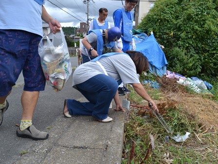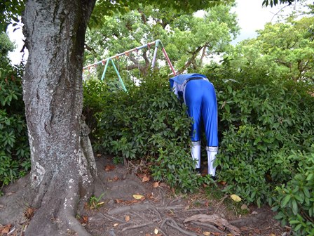 茂みに落ちているゴミを体ブルーが発見!