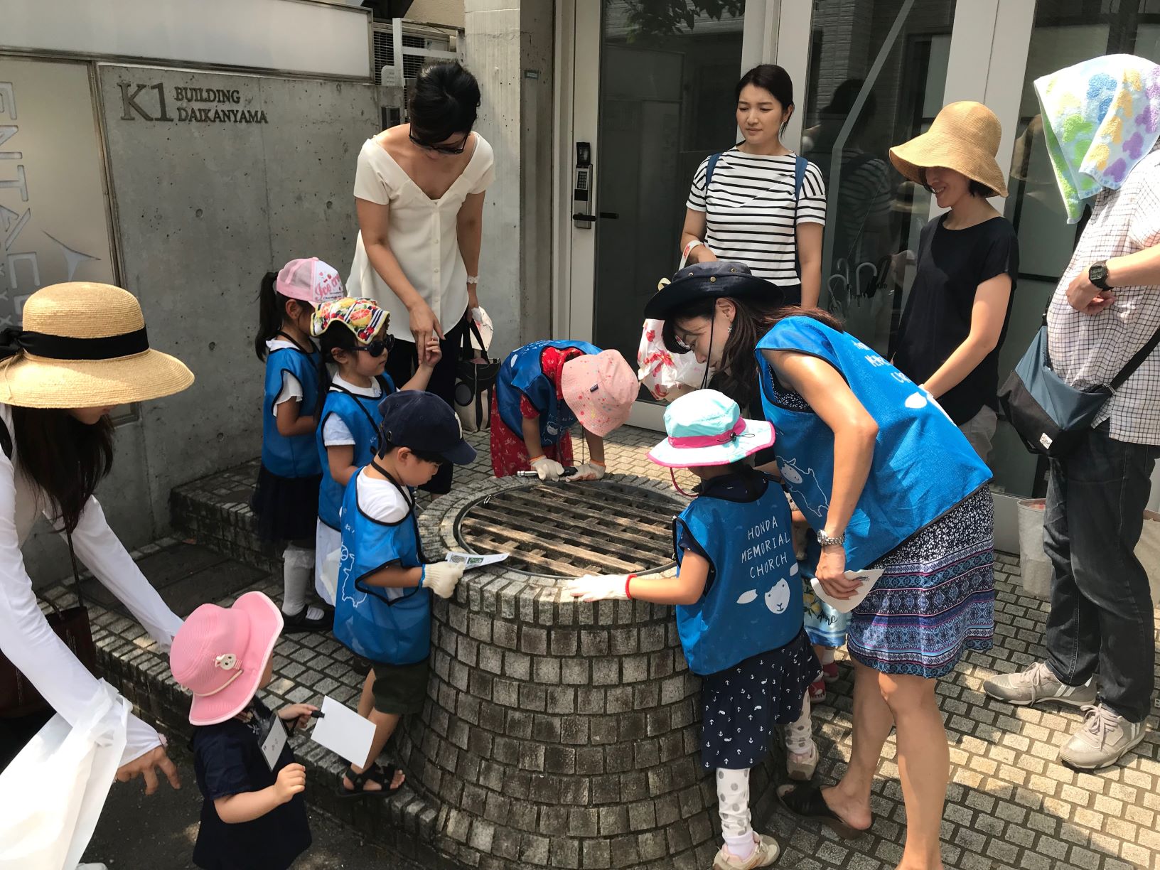 そして、井戸を発見。代官山は丘の上ですが、昔から水が豊富ですいか畑が広がっていたそうです。子供たちは井戸に向かって「おーい!」「ヤッホー!」と声をかけていました。昔の子供と同じですね。