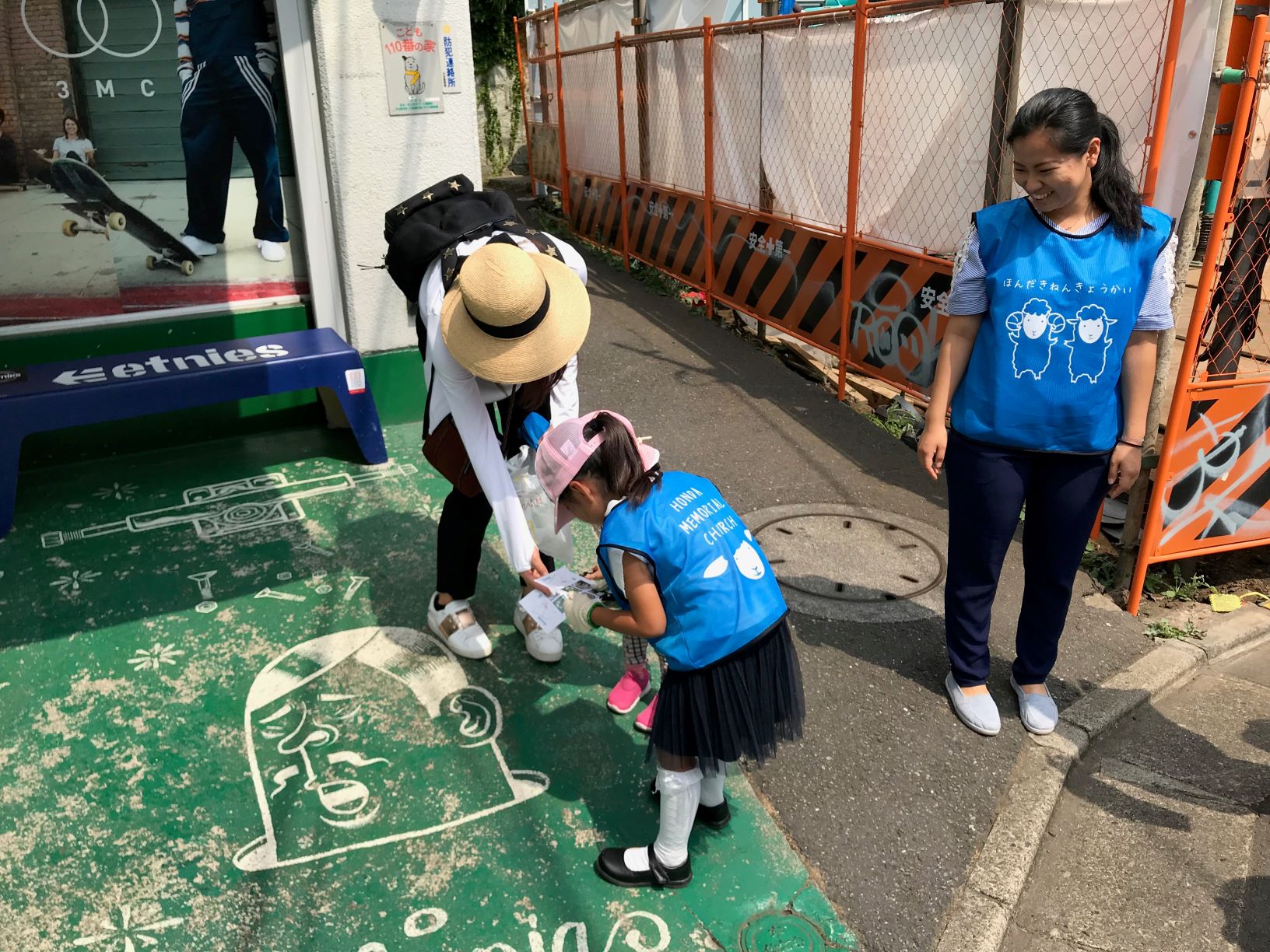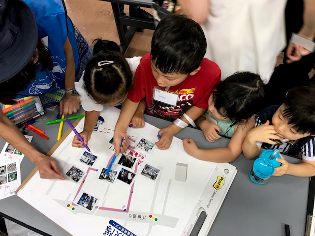 教会に戻って今日の街いくマップにどこにどんなゴミが落ちていたか、気づいたことや、路地裏に名前をつけたりしてくれました。