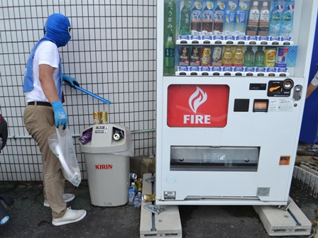 自販機周辺にゴミ箱から溢れかえった空き缶たちを徹底的にコロります。