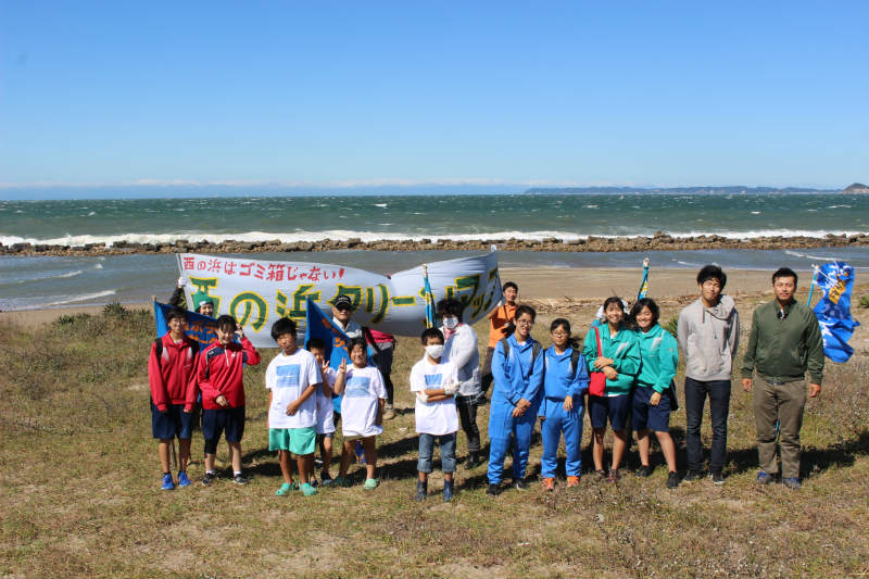 毎月実施している西の浜クリーンアップ活動。今回は、豊橋河川事務所が事務局をしている川と海のクリーン大作戦また、全国ふるさと清掃運動会、World Clean Up活動に連動して行いました。前日の台風の影響で、浜にはたくさんの流木が流れ着いていました。もちろん、ゴミも多くありました。