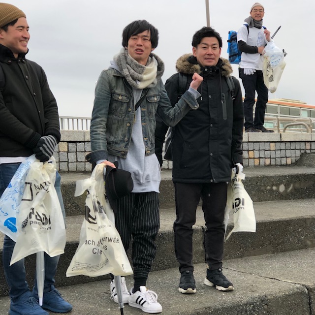 雨は午前中であがりましたが、寒いなかでのビーチクリーンになりました。そんな中、4組のお笑い(ペニーズハウス、ロビンソンズ、キサラギ、マシンガンズ)が寒さを吹き飛ばしてくれました。