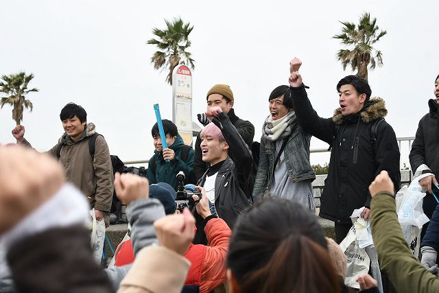 「お笑いビーチクリーン」は今までも、なぜかとても寒く、その日だけが雪が降ったりするのです。なので、またかぁ~、お笑いビーチクリーンは、寒くなる!!そんな伝説が頭をよぎりました。前日の予報、低い気温、午前中に雨が降っているという悪条件だったので、あまり参加者がいらしてくれないかなぁ~、と思っていましたが、135名の参加者がいらしてくださいました!!寒い中ありがとうございました。