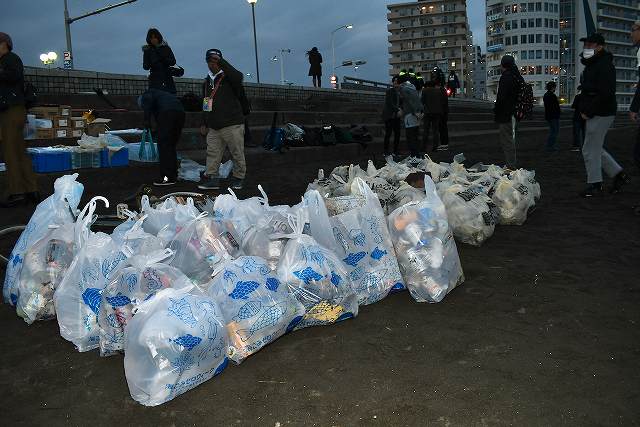 キレイにみえた片瀬東浜に見えましたが、可燃ごみ20袋 不燃ごみ25袋も拾うことができました。