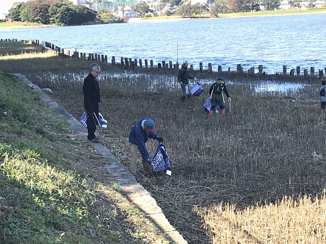 その後、有志で北欧で始まり世界中で活動が広まっている〝プロギング=スローペースで走りながら(実際は歩きながら)のゴミ拾い で佐鳴湖1週しました。