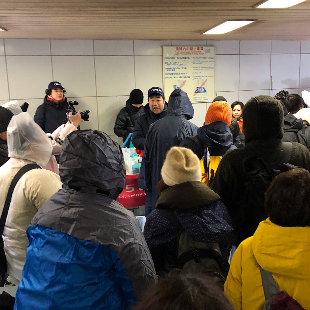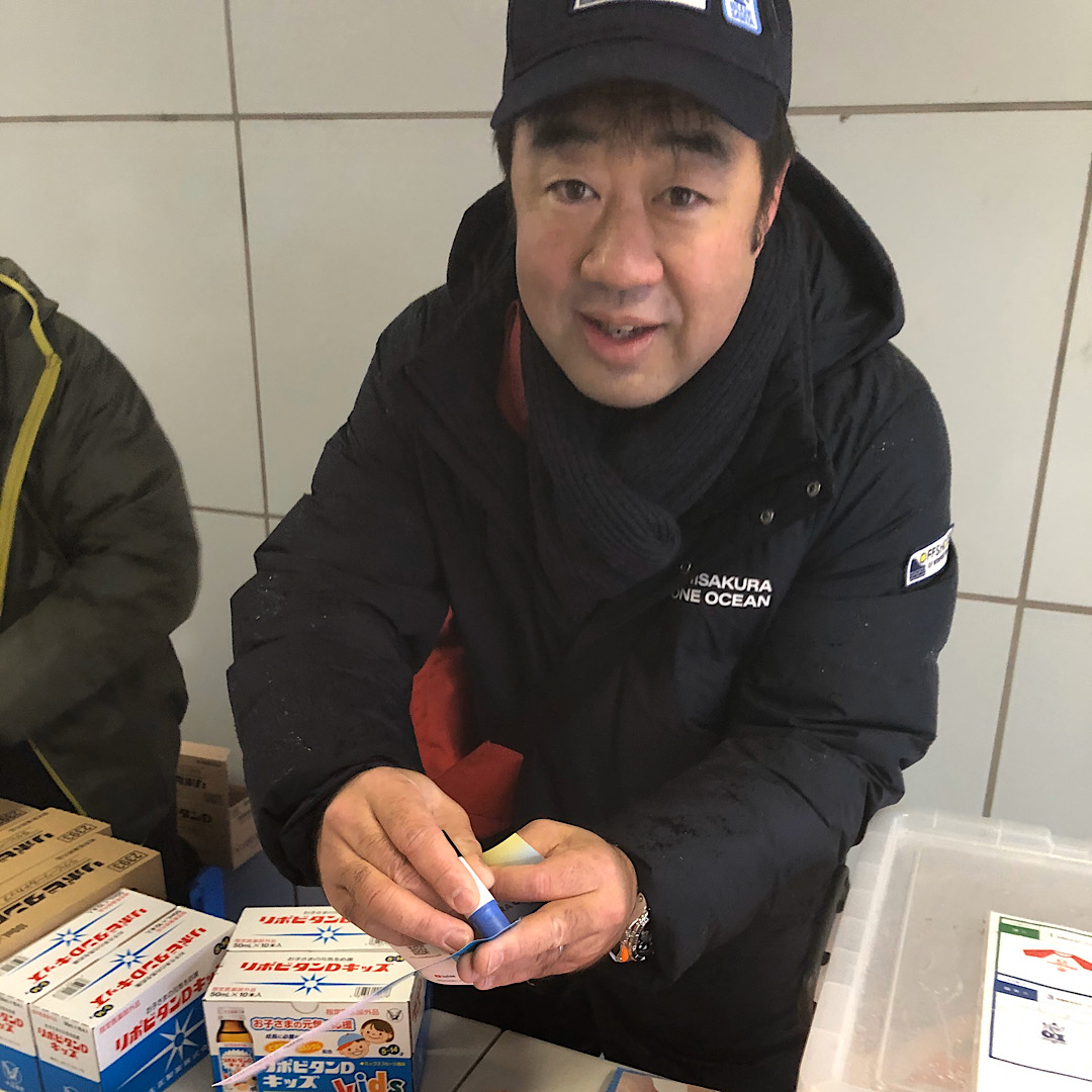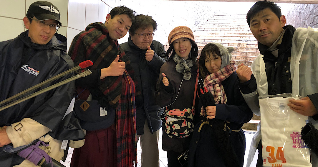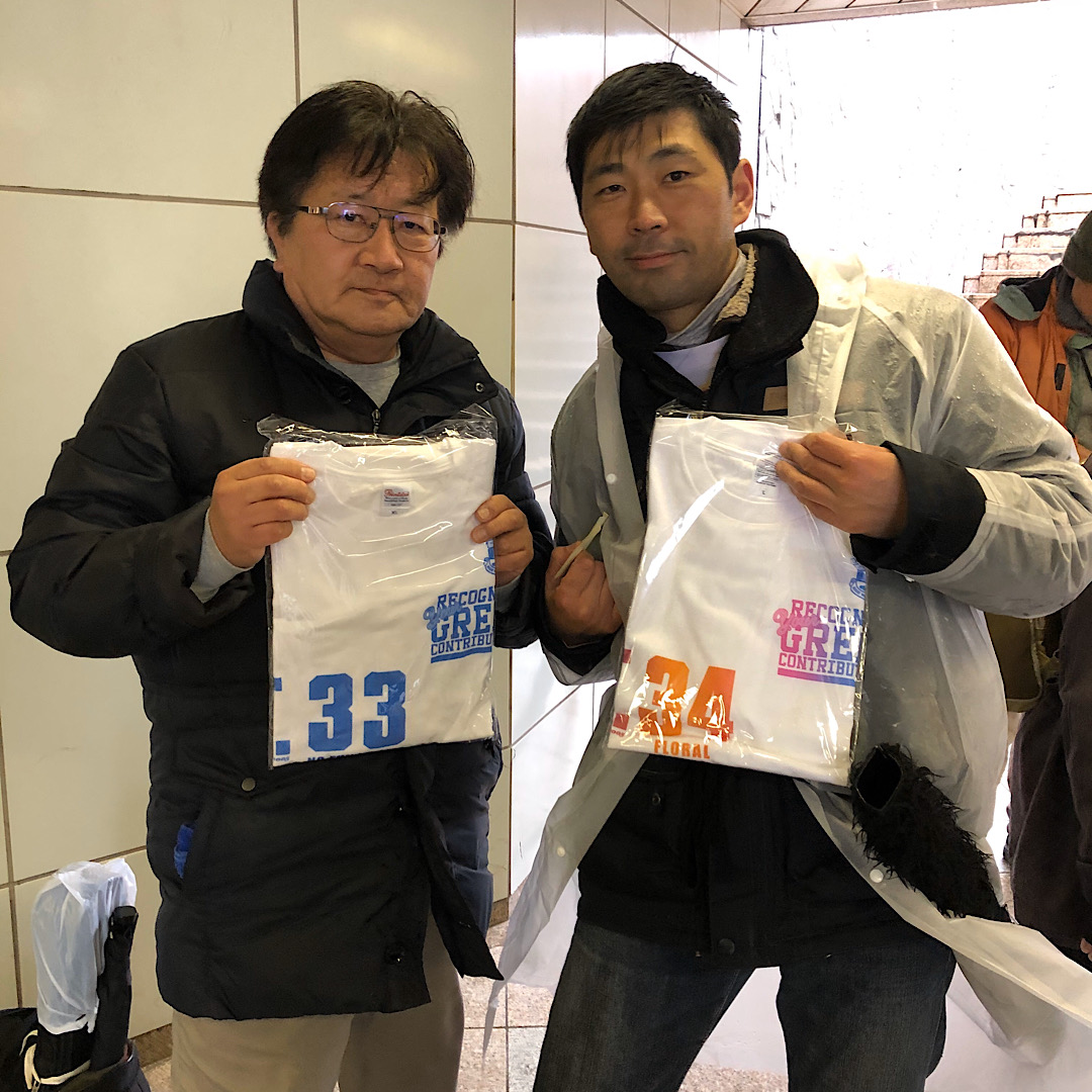 終了後に、江の島の橋の前の地下道で、古澤代表自ら参加スタンプを押してくれました。そして、我らの石渡さん、鈴木さんがTシャツ頂きました。
