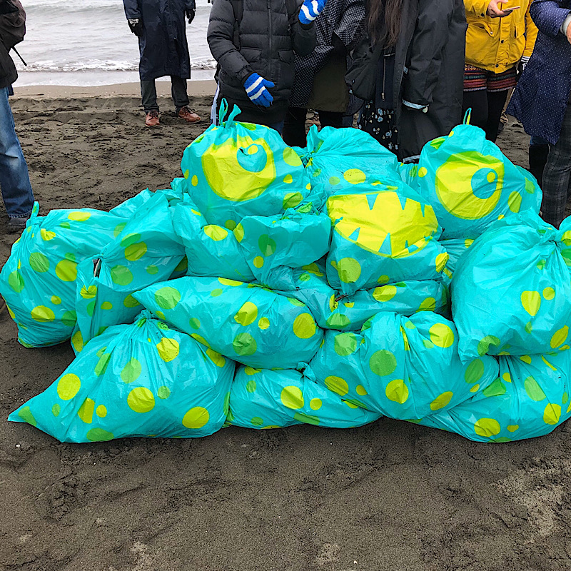 寒い雨のビーチクリーンになりました。鎧Tシャツを着ていても上着とカッパで見えません。。。