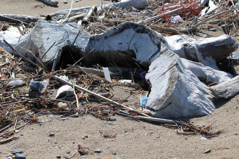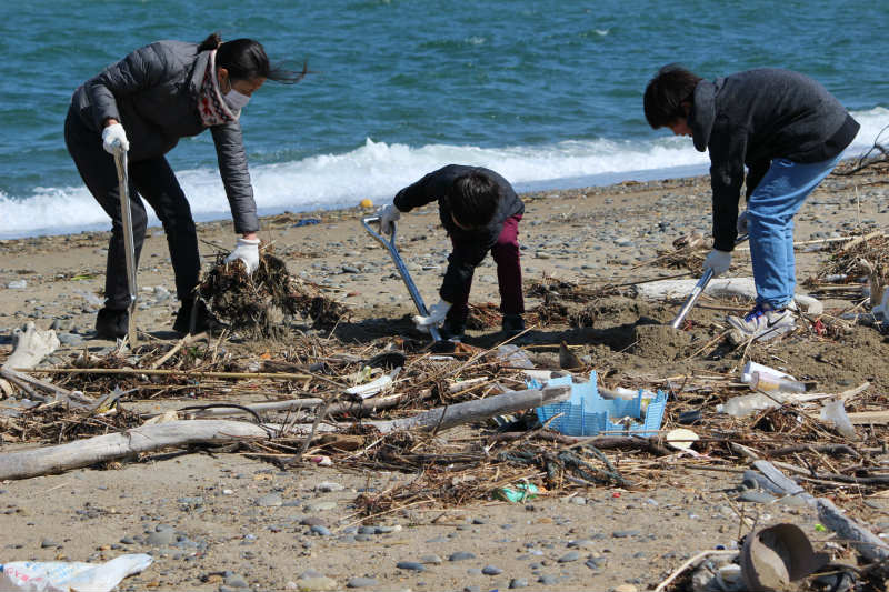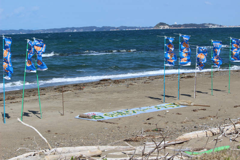 「西の浜はゴミ箱じゃない!」をスローガンに毎月行っている「西の浜クリーンアップ活動」。横断旗は風のために立てられませんでしたが、すごく寒いということはなく、活動日よりとなりました。