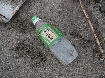 調べたら1996年ごろのペットボトルだったのですが、その頃のペットボトルを3.4個ほど発見。波で細かく砕かれてマイクロプラになってしまうゴミもあれば、30年近く形を維持しているゴミもある・・・不思議だなとおもいました。
