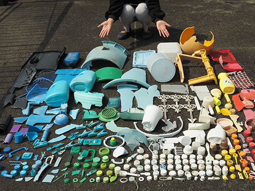 私たちは海で拾ったプラスチックごみを使って新しい製品を作る技術の開発をしています。