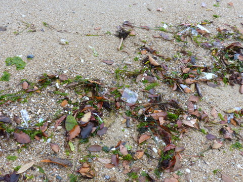今日は,15:30−17:00までゴミ拾いをしました。途中雨が降り出したため,1時間早く切り上げました。比較的干潮だったため,波打ち際に無数のごみがありました。