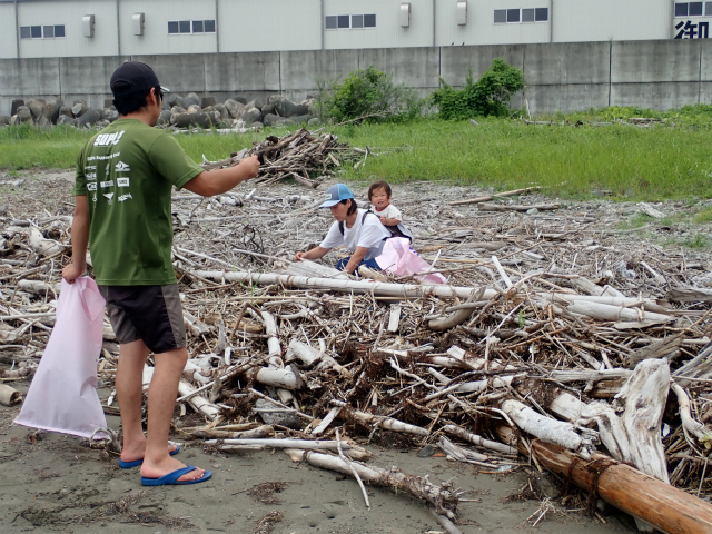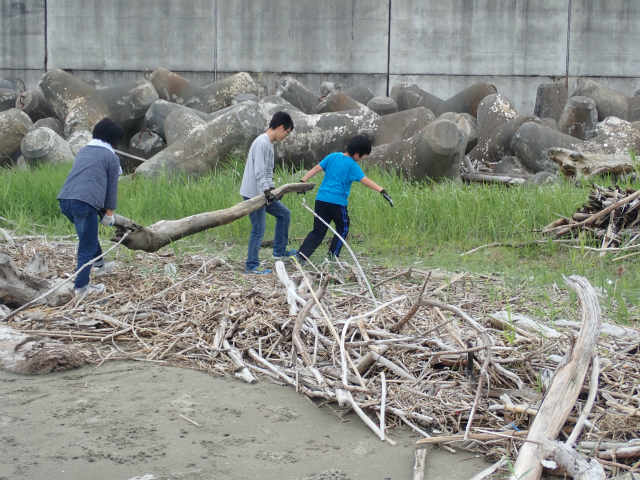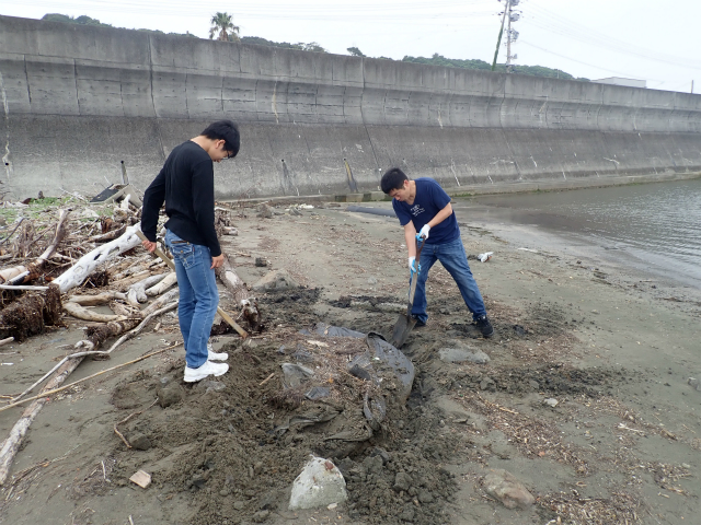 前回に引き続き、流木の撤去と漂着ゴミ回拾、そして、砂浜に埋まった大きな土囊袋掘りと手分けして作業を行いました!!
