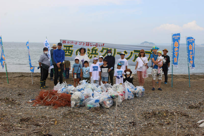 毎月の西の浜クリーンアップ活動。通算、286回目 参加者は21人 ゴミの総重量は110㎏ これでトータルのゴミの量は74,920Kgとなった。今日は、ゴミも多いが、いろいろな生き物が見つかった。